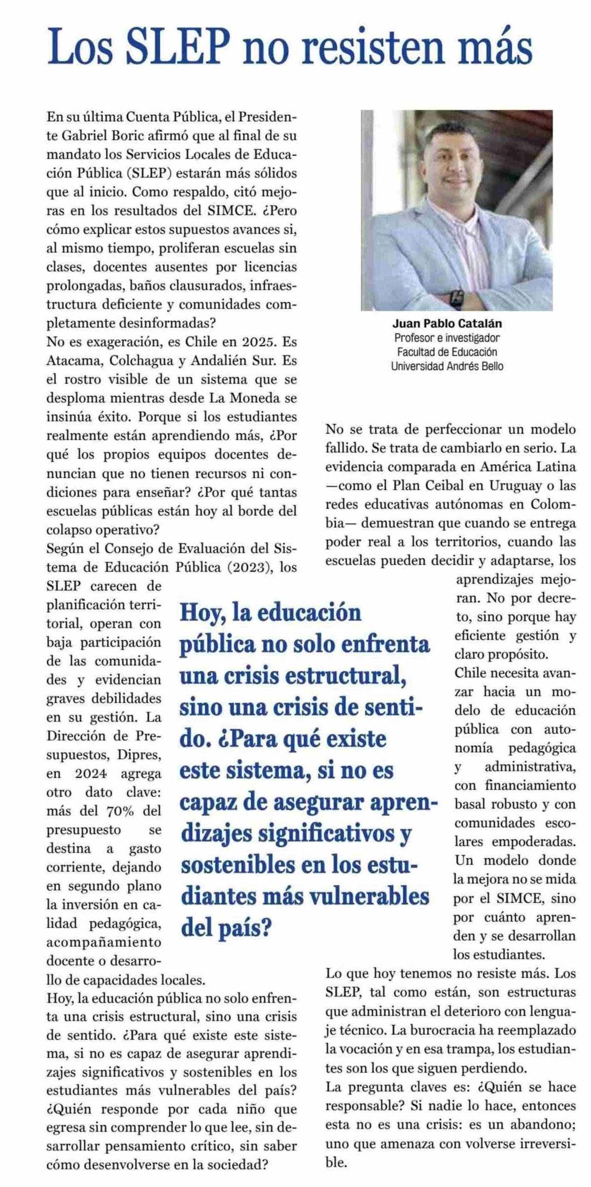 CARTAS: Los SLEP no resisten más 18-06-2025 La Prensa de Curicó |