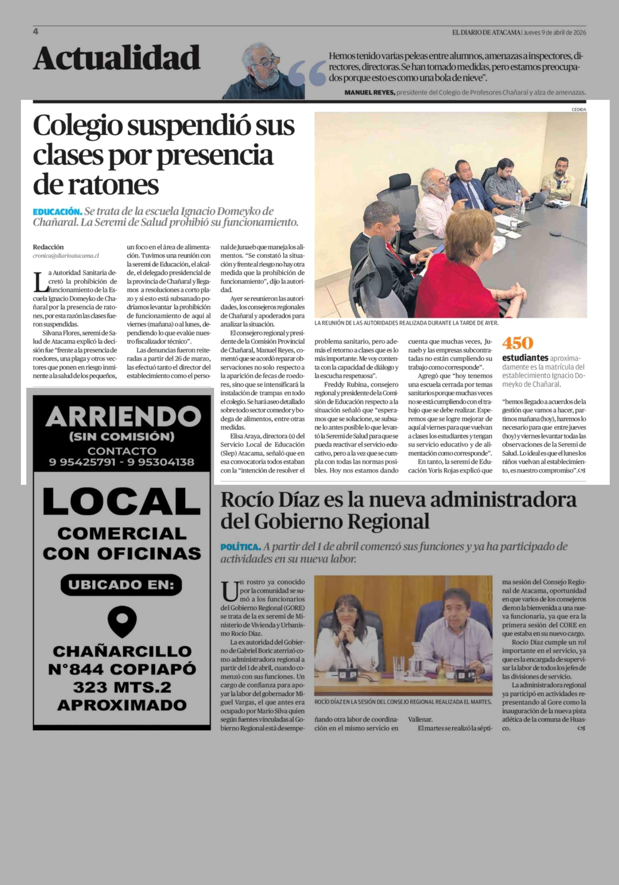 Colegio suspendió sus clases por presencia de ratones 09-04-2026 El Diario de Atacama |