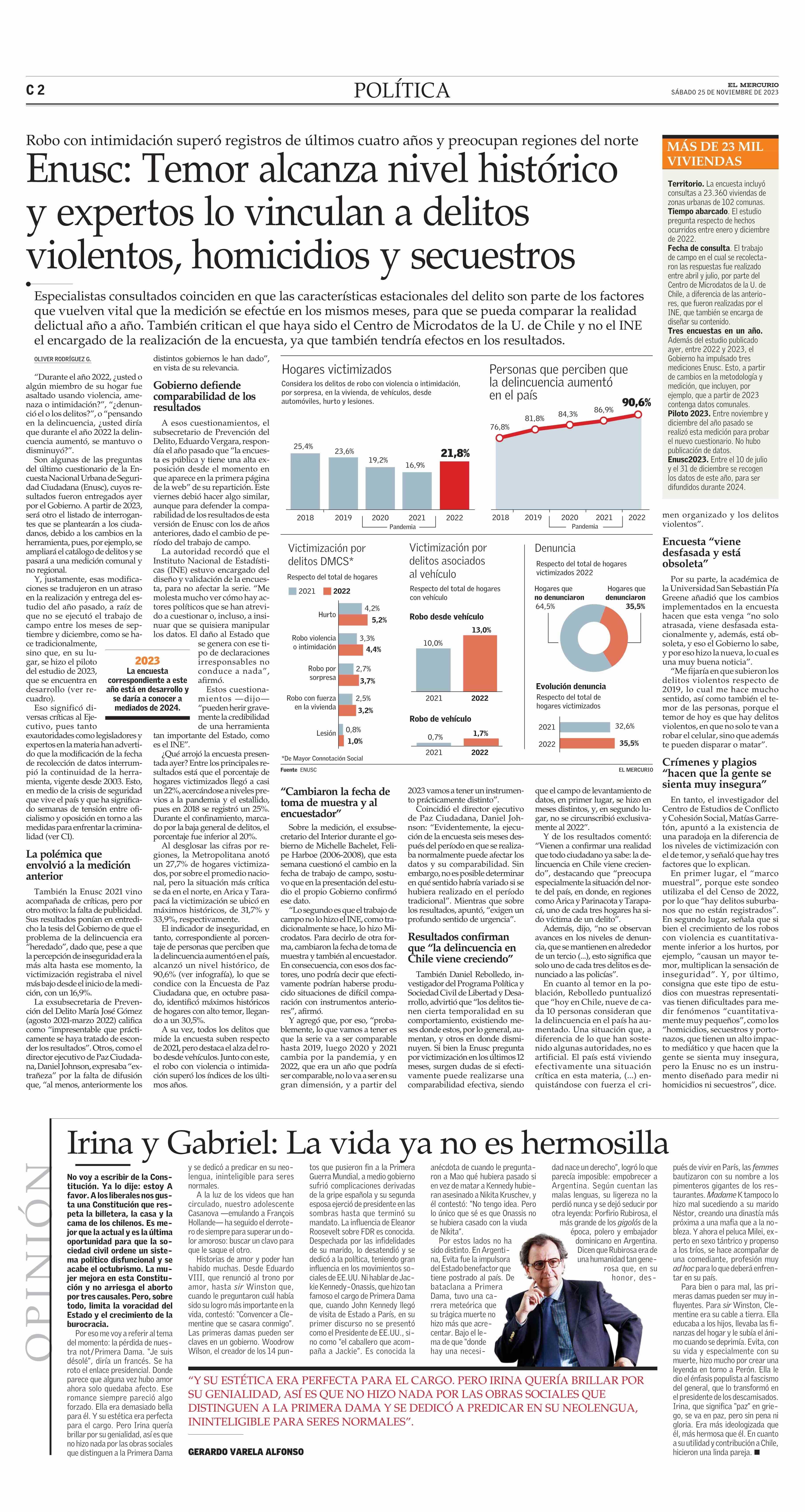 Enusc: Temor alcanza nivel histórico y expertos lo vinculan a delitos violentos, homicidios y secuestros 25-11-2023 El Mercurio |
