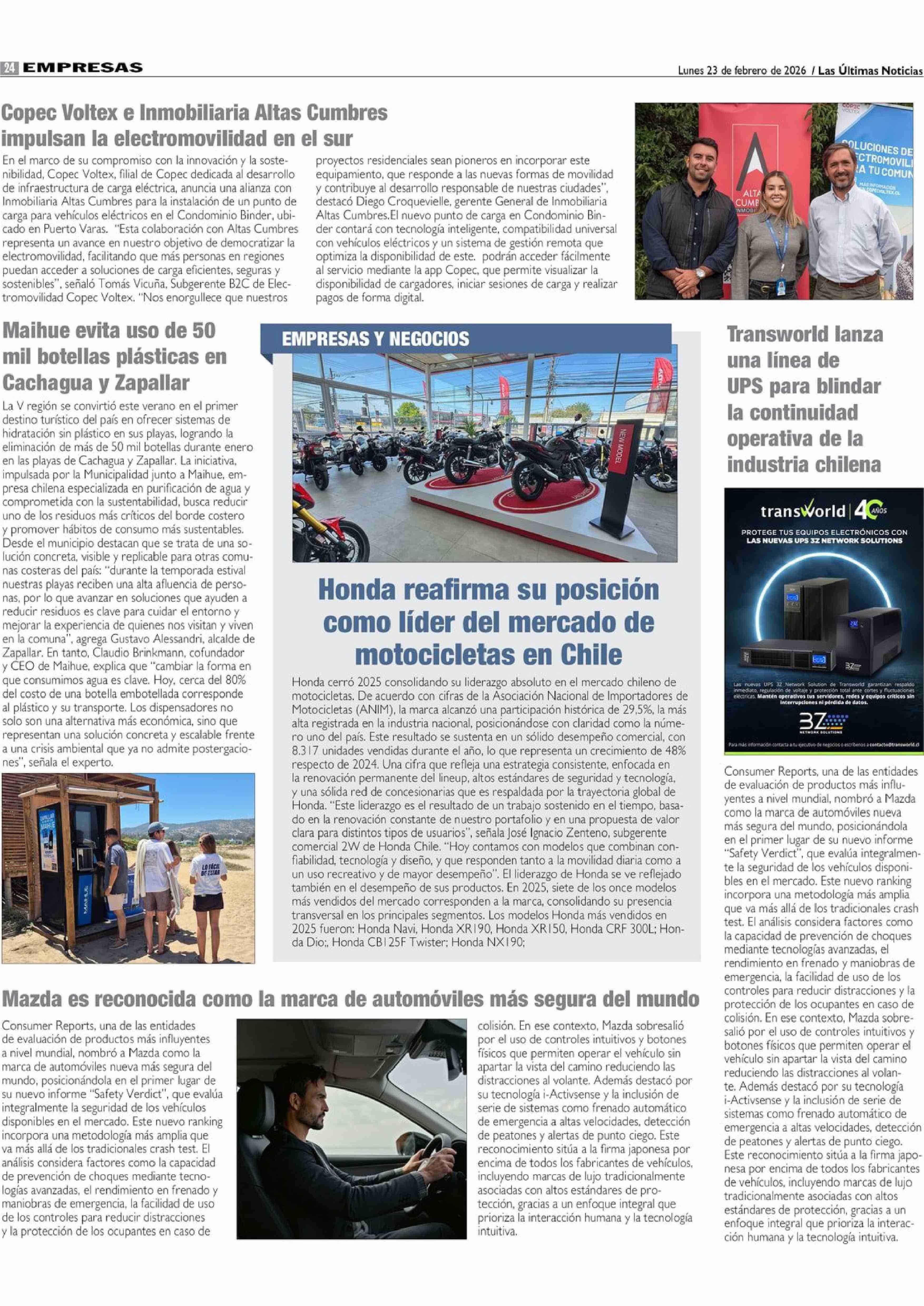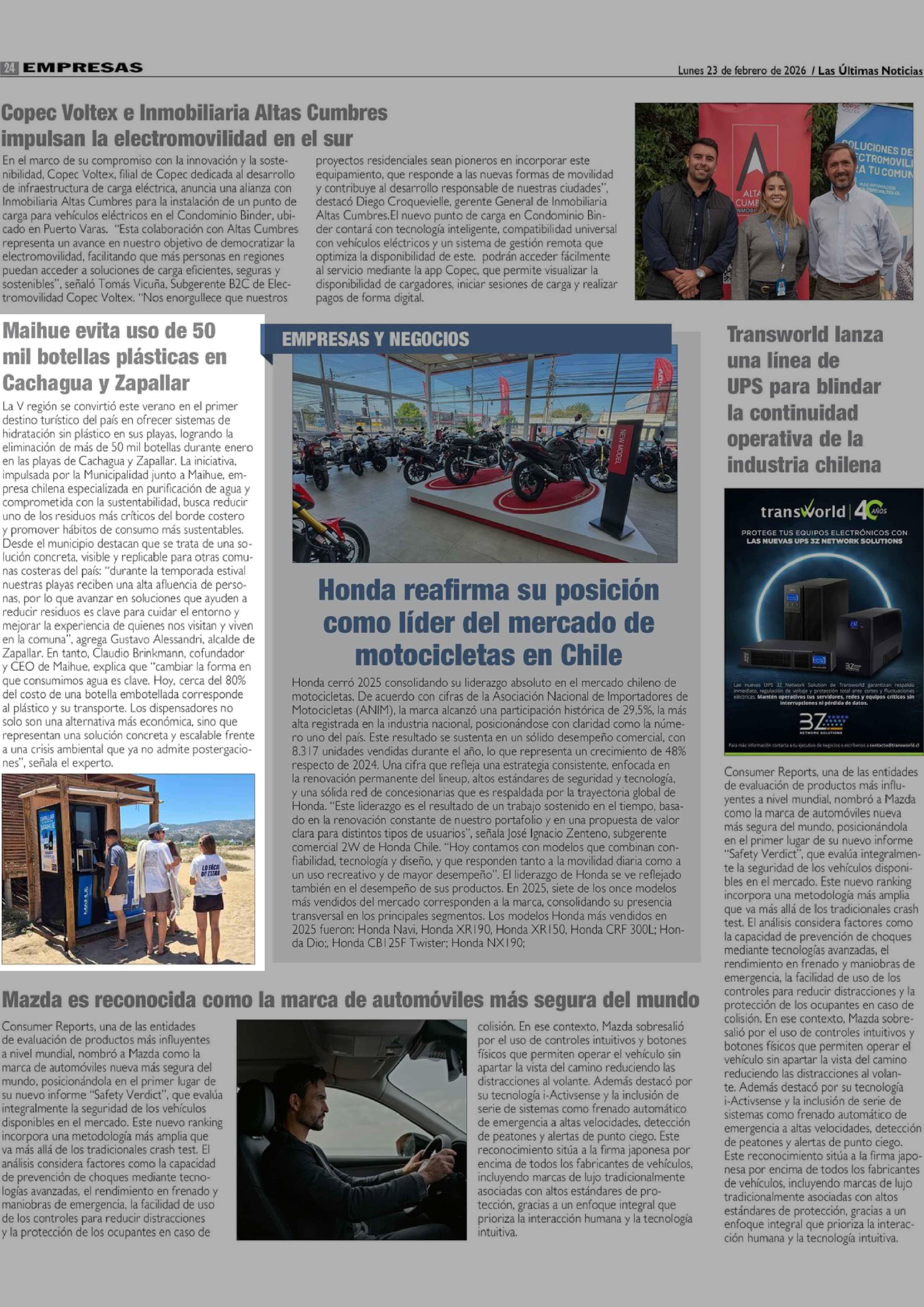 Maihue evita uso de 50 mil botellas plásticas en Cachagua y Zapallar 23-02-2026 Las Últimas Noticias |