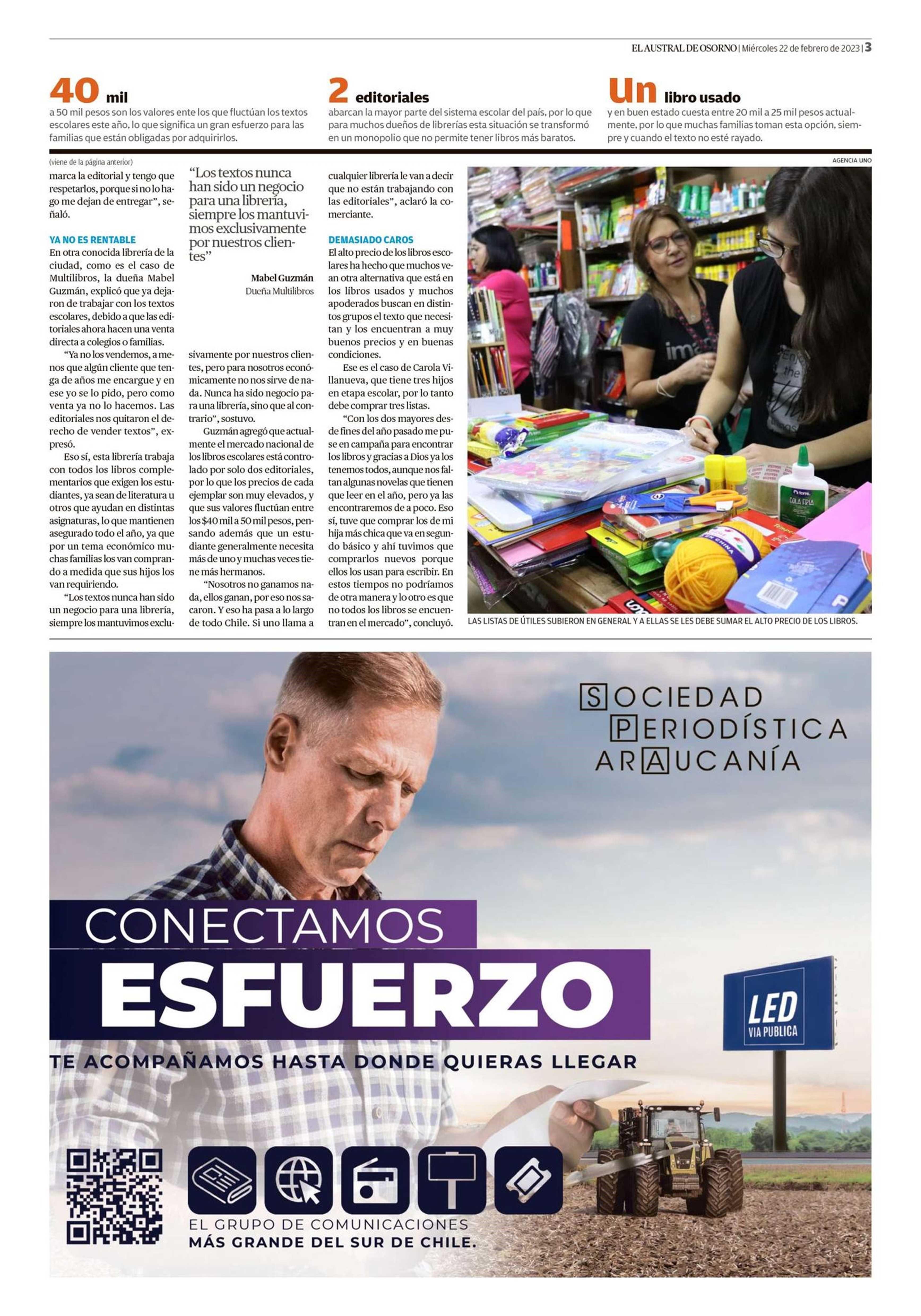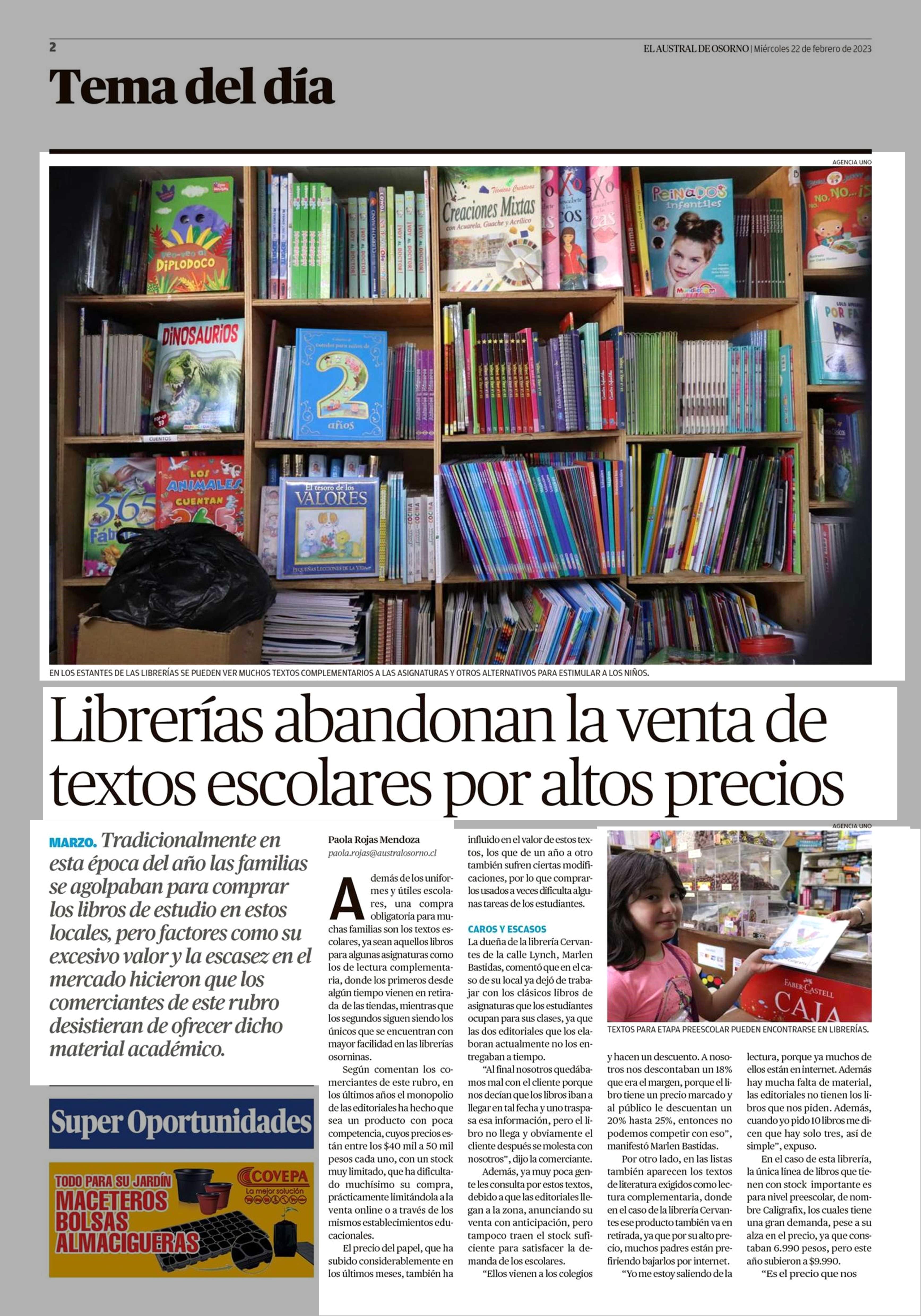 Librerías abandonan la venta de textos escolares por altos precios 22-02-2023 El Austral de Osorno |