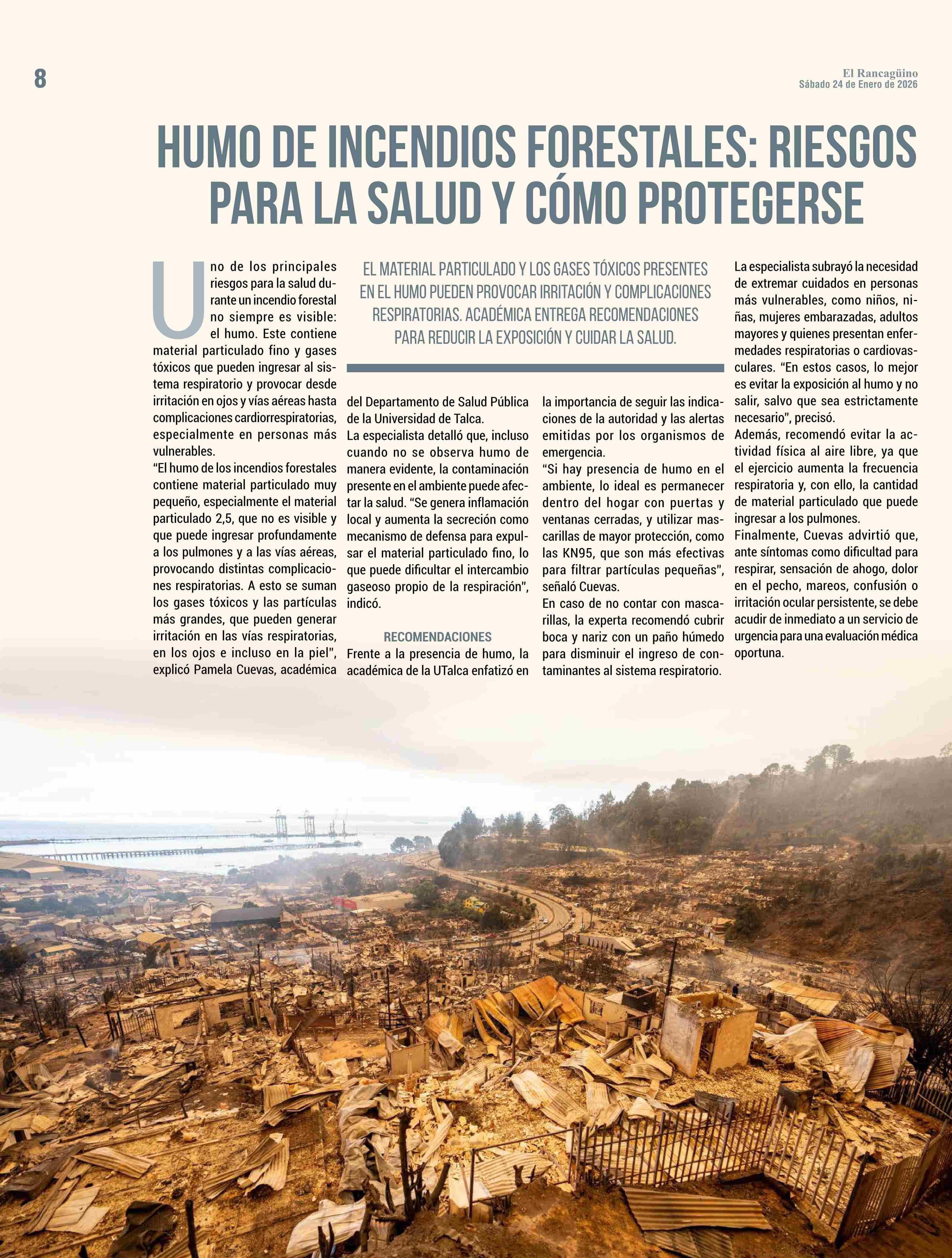 HUMO DE INCENDIOS FORESTALES: RIESGOS PARA LA SALUD Y CÓMO PROTEGERSE 24-01-2026 El Rancagüino |