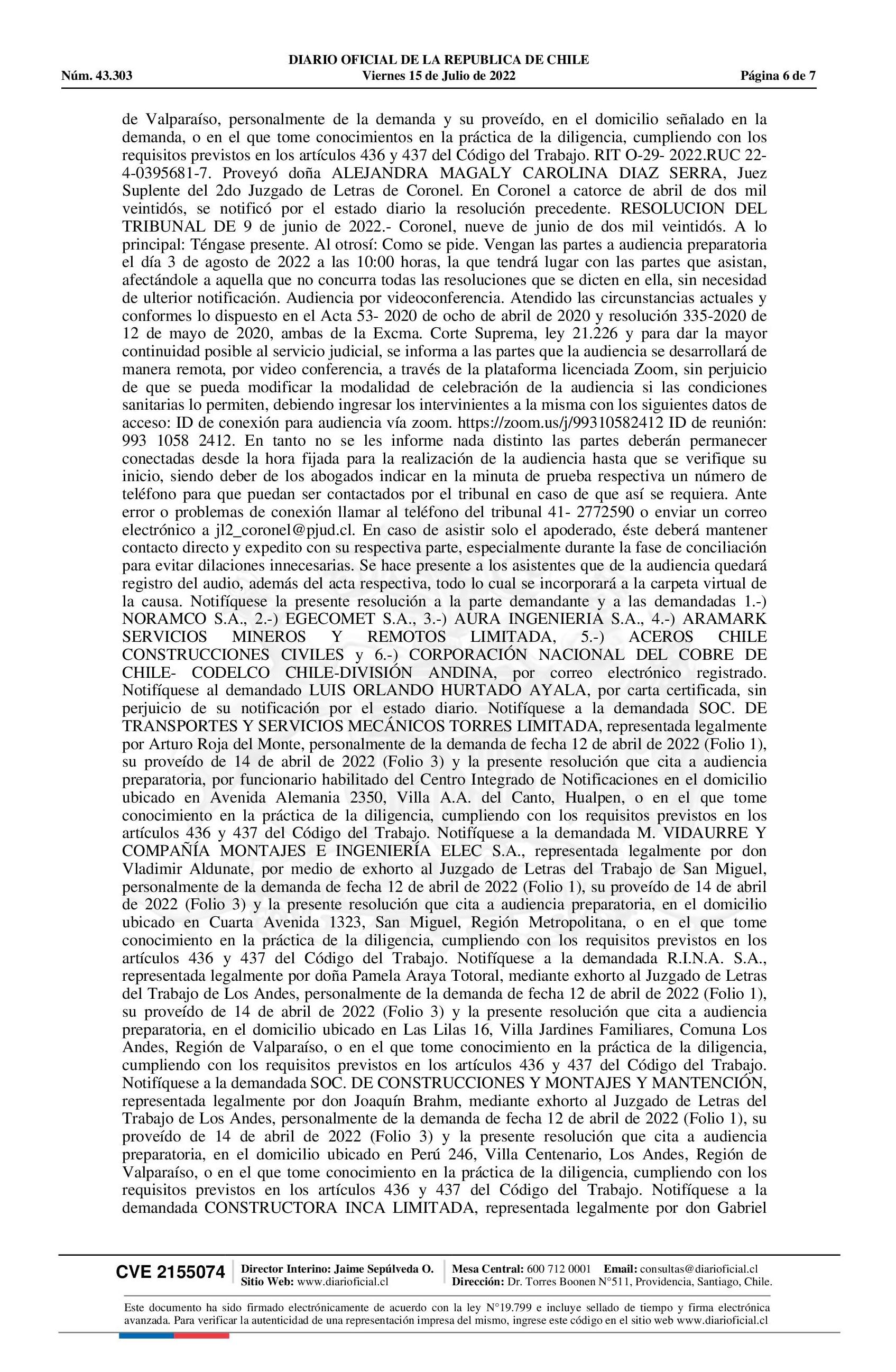 Notificación 15-07-2022 Diario Oficial Edición Electrónica |