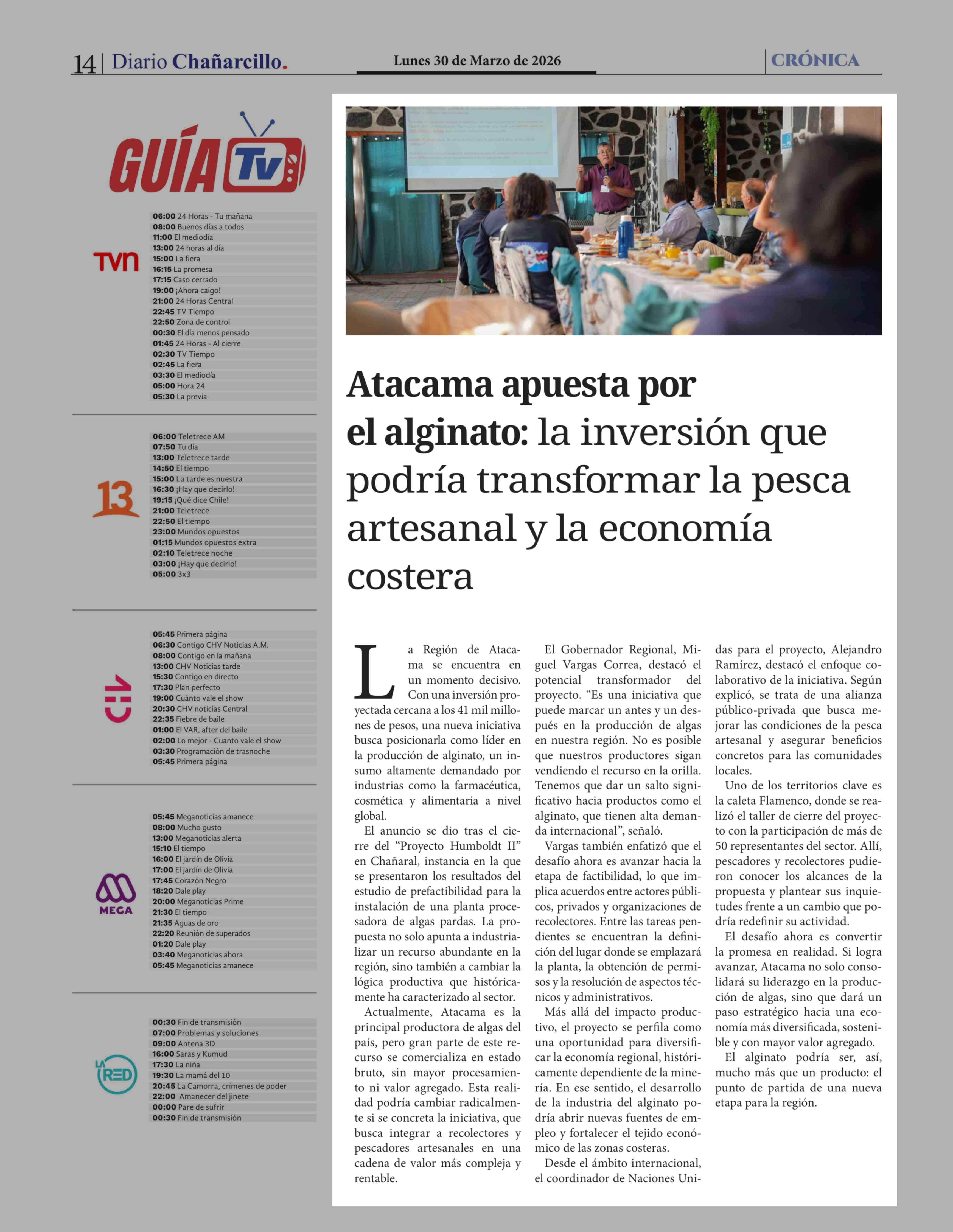 Atacama apuesta por el alginato: la inversión que podría transformar la pesca artesanal y la economía costera 30-03-2026 Diario Chañarcillo |