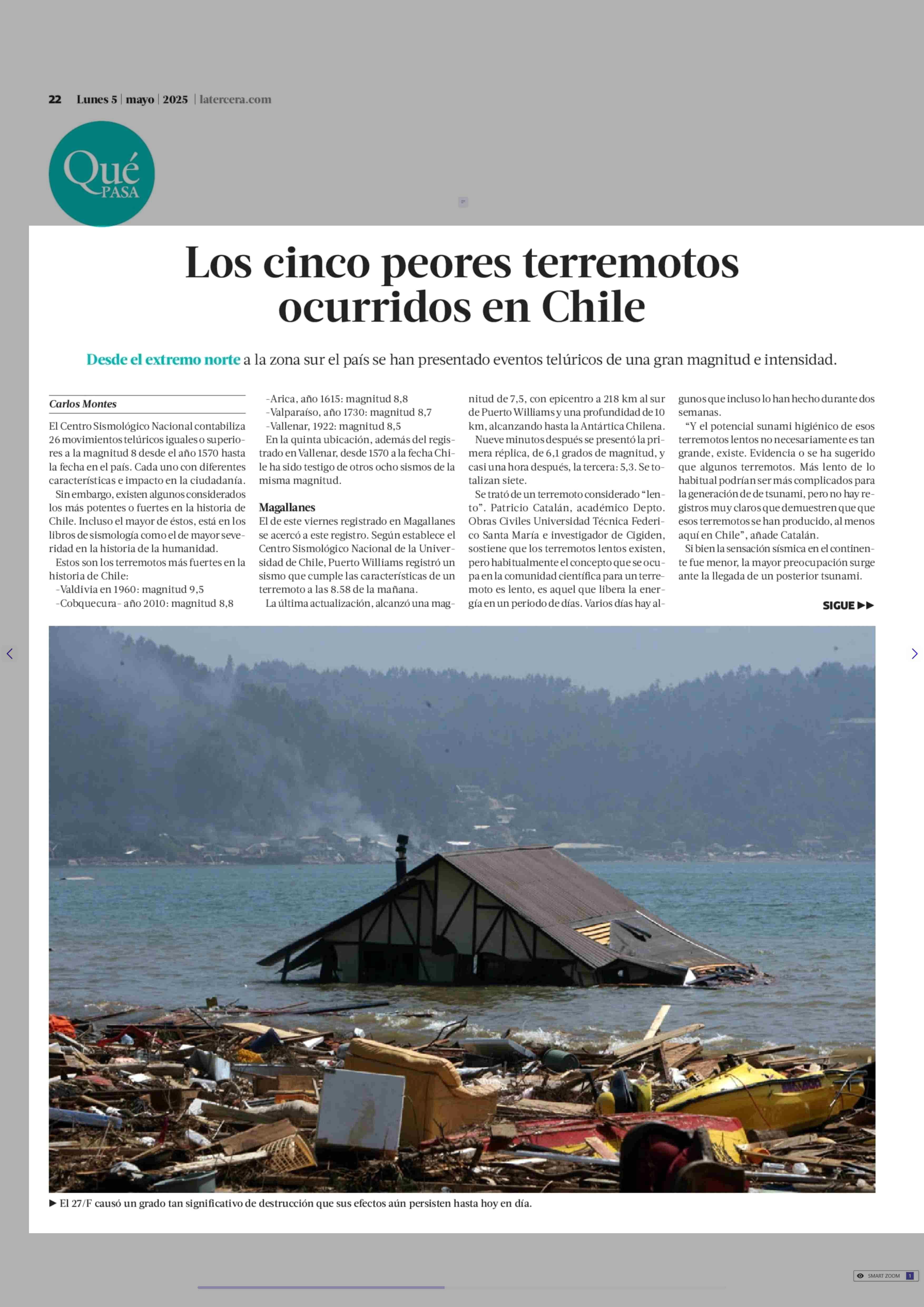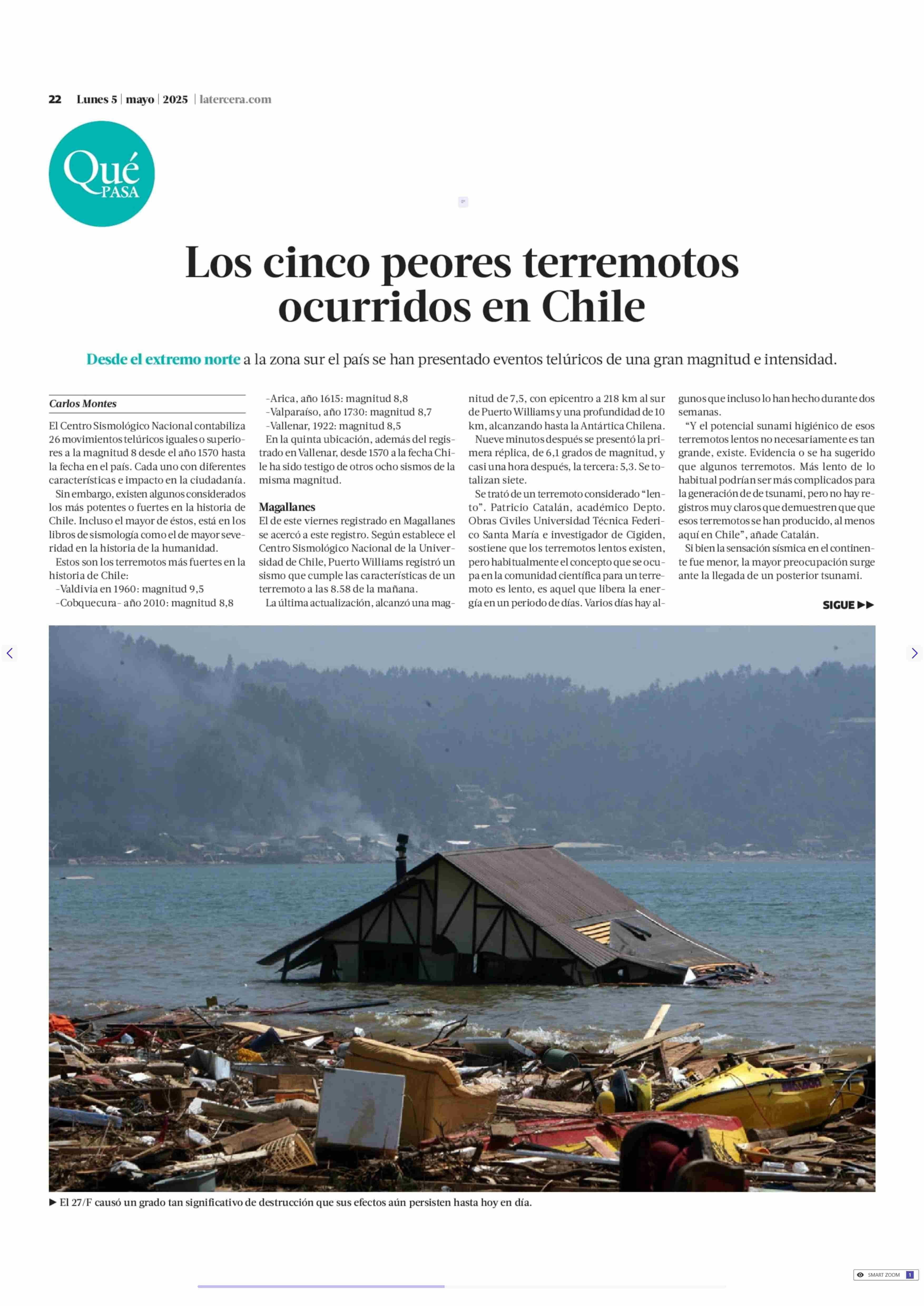 Los cinco peores terremotos ocurridos en Chile 05-05-2025 La Tercera |
