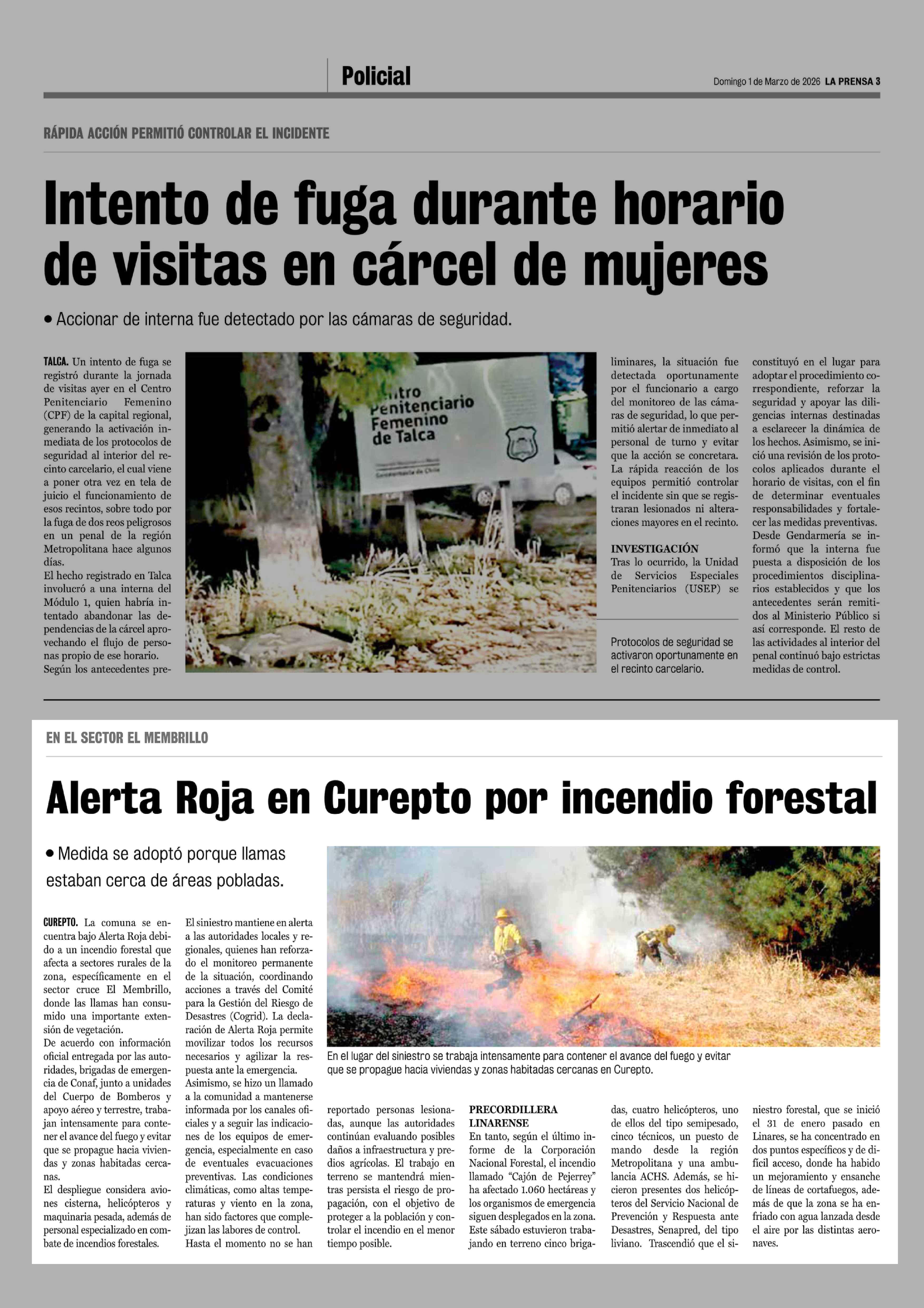 Alerta Roja en Curepto por incendio forestal 01-03-2026 La Prensa de Curicó |