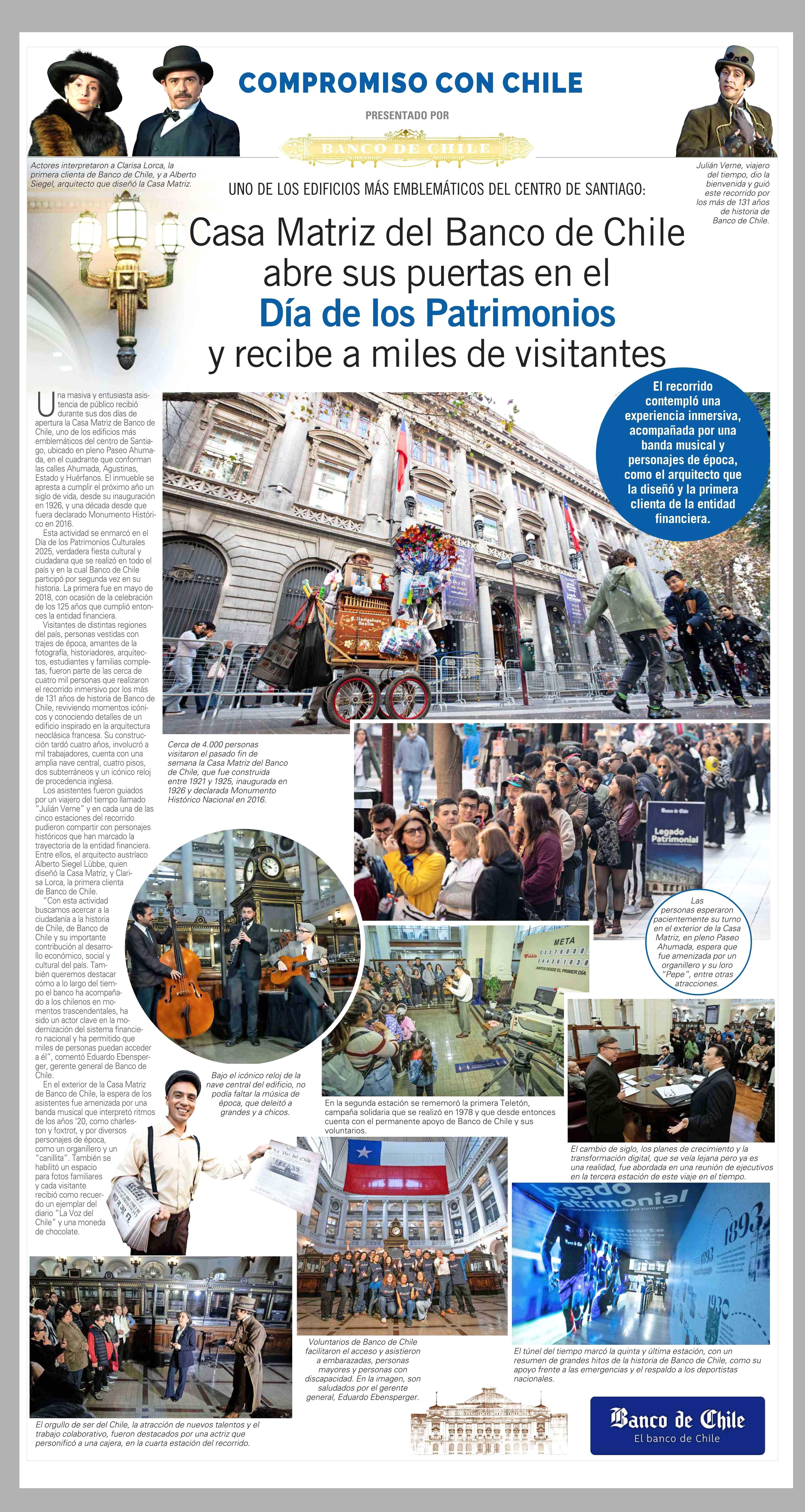 Casa Matriz del Banco de Chile abre sus puertas en el Día de los Patrimonios y recibe a miles de visitantes 29-05-2025 El Mercurio |