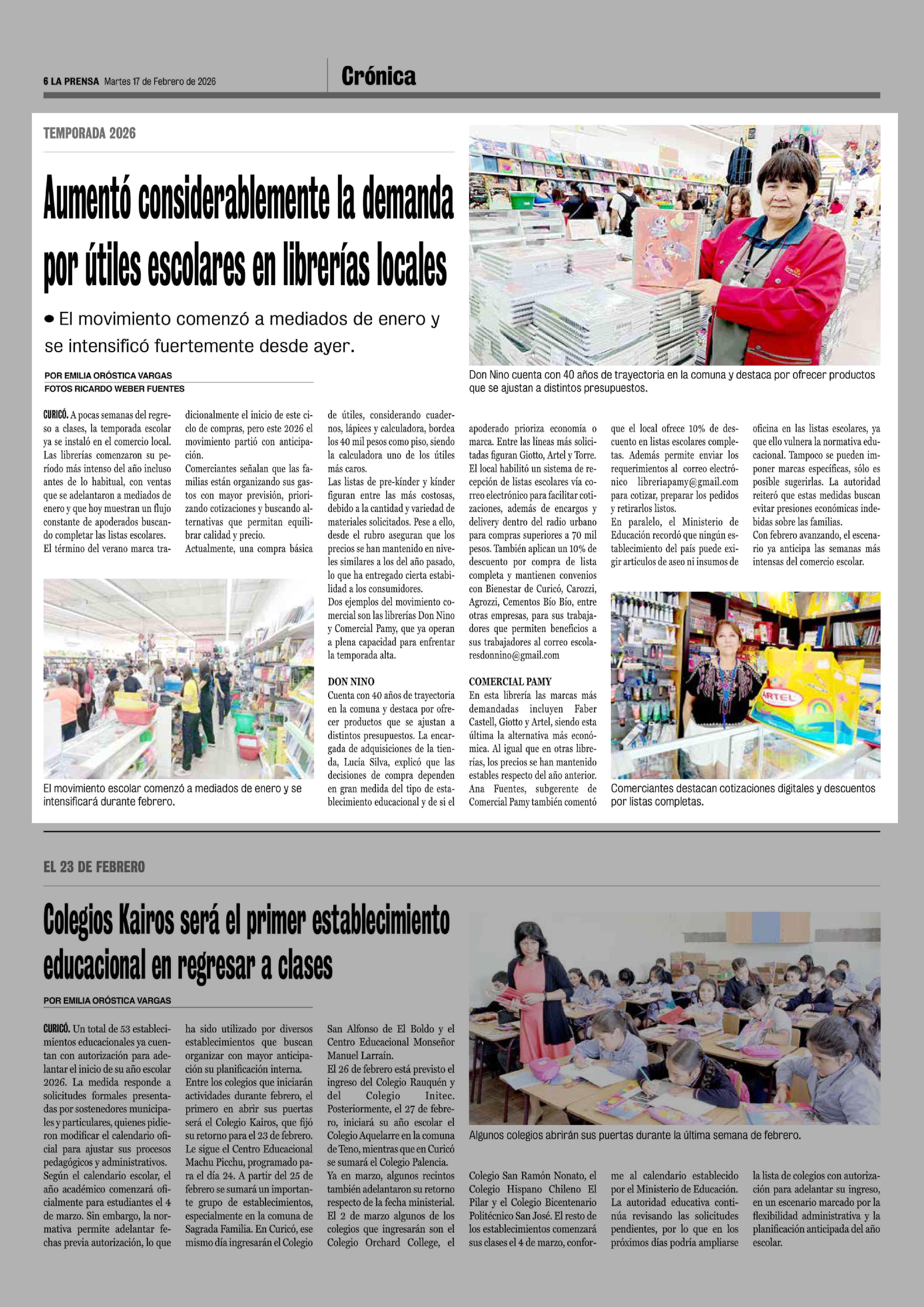 Fuente: La Prensa de Curicó (La Prensa de Curicó) Página(s): 6