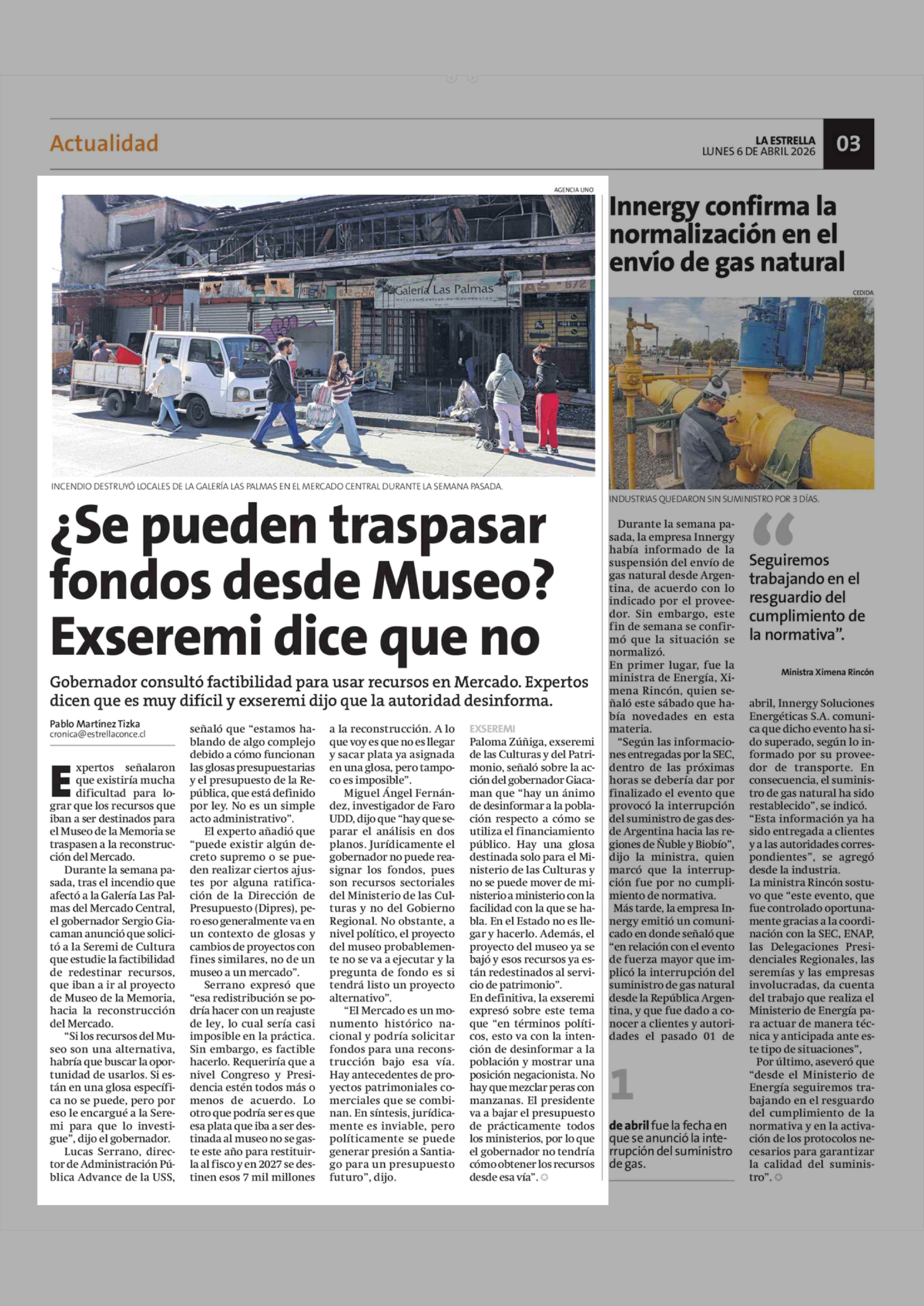 ¿Se pueden traspasar fondos desde Museo? Exseremi dice que no 06-04-2026 La Estrella de Concepción |
