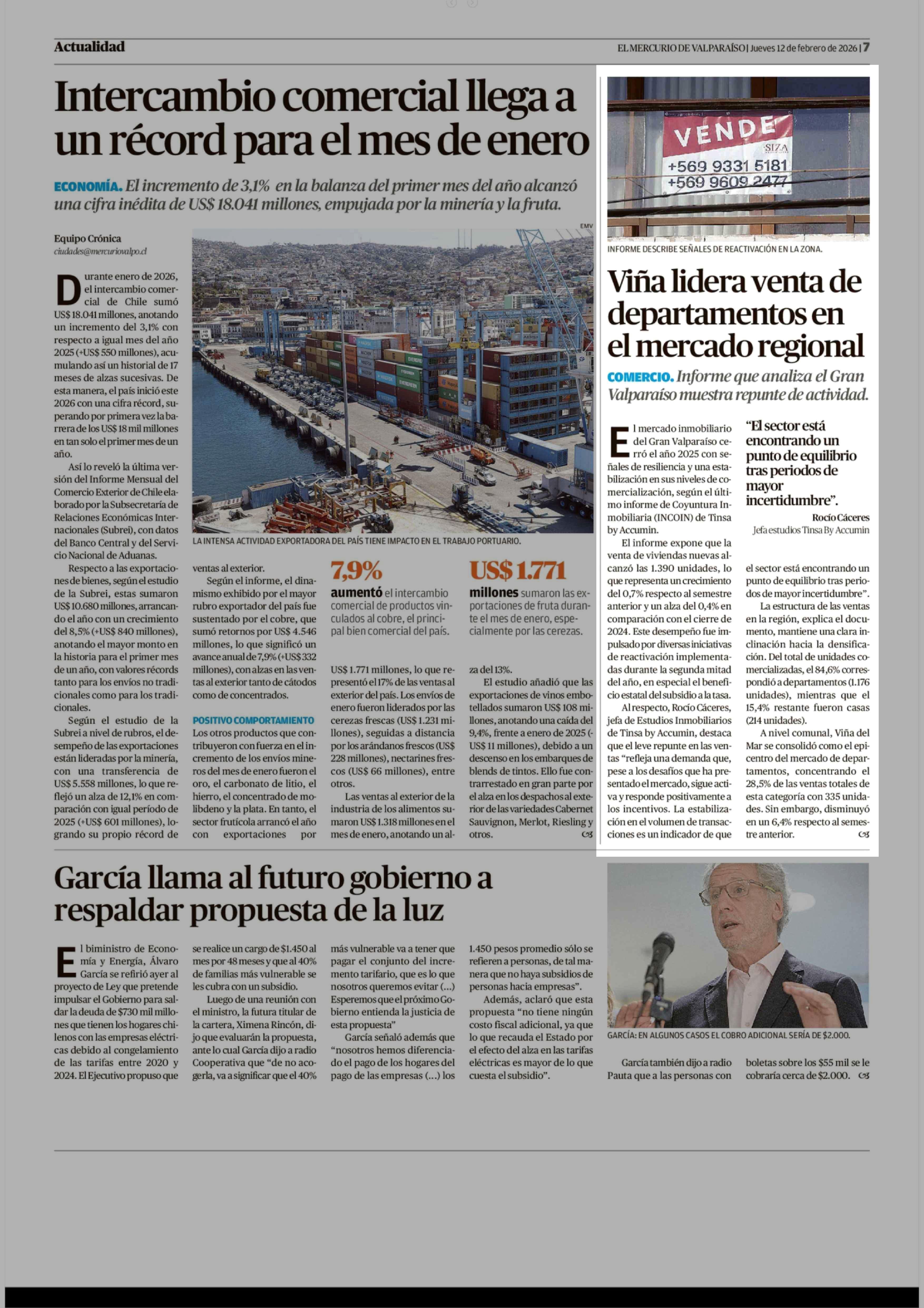 Viña lidera venta de departamentos en el mercado regional 12-02-2026 El Mercurio de Valparaíso |