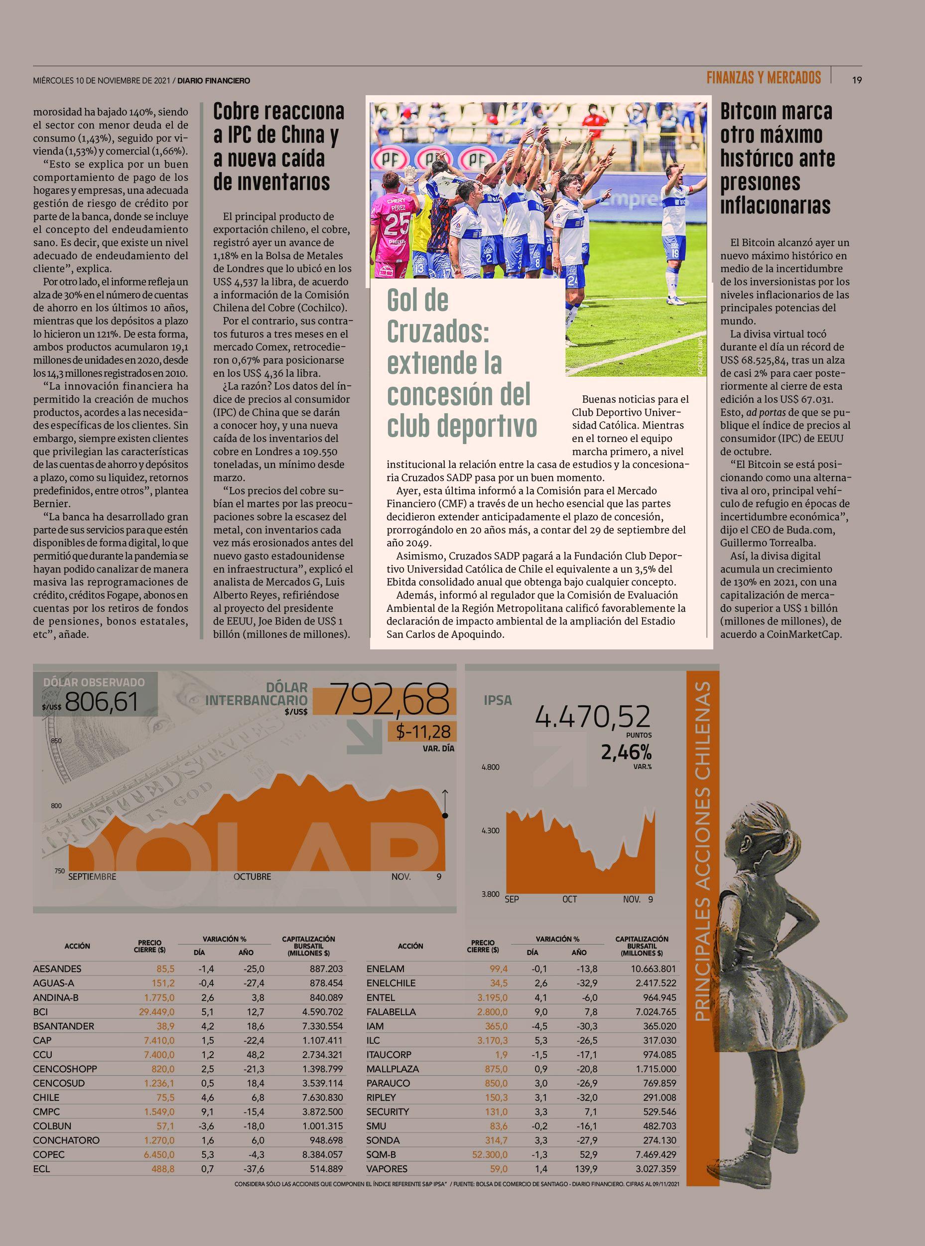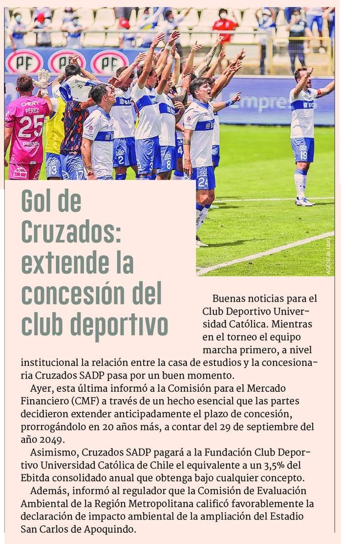 Gol de Cruzados: extiende la concesión del club deportivo 10-11-2021 Diario Financiero |