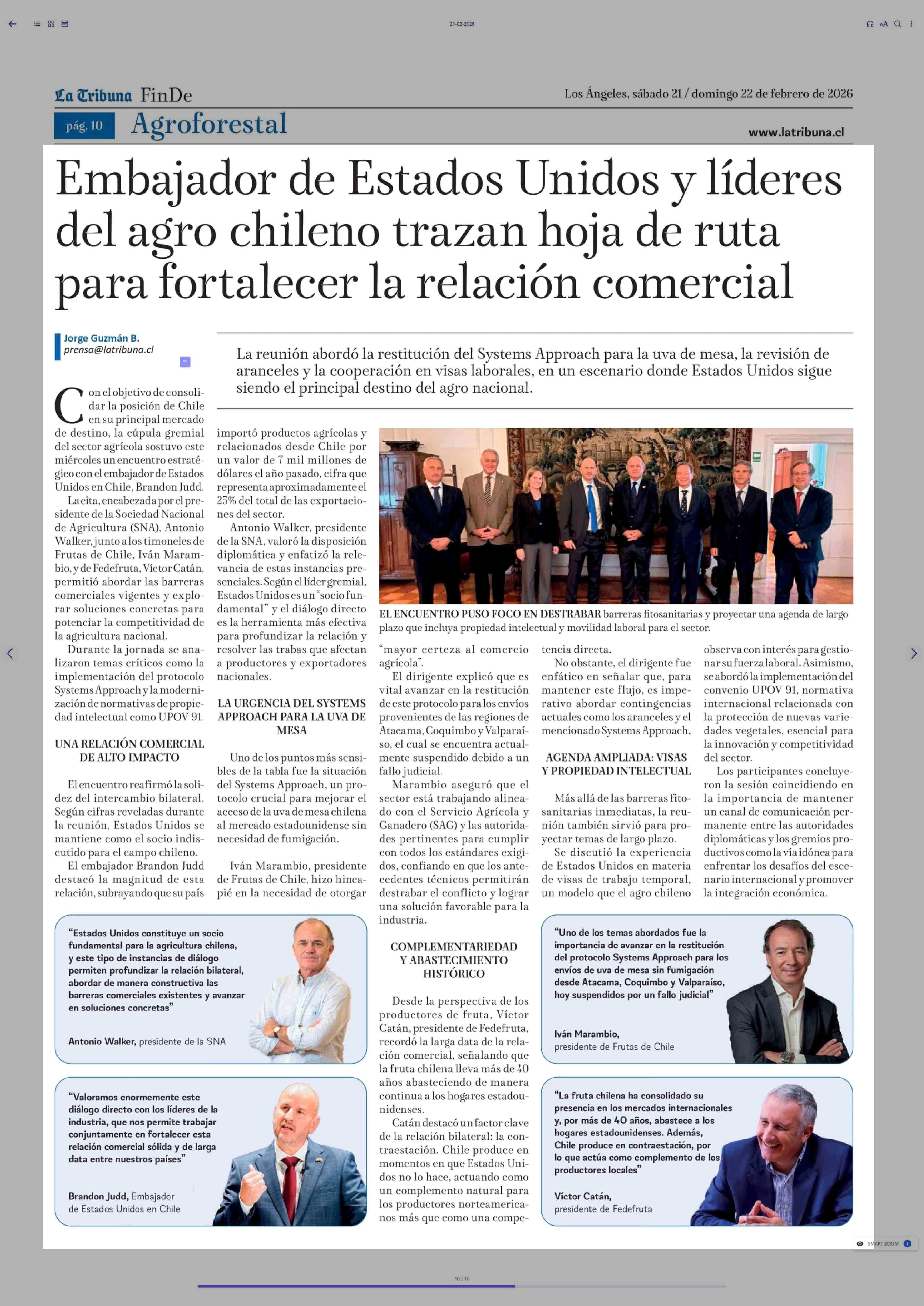 Título: Embajador de Estados Unidos y líderes del agro chileno trazan hoja de ruta para fortalecer la relación comercial