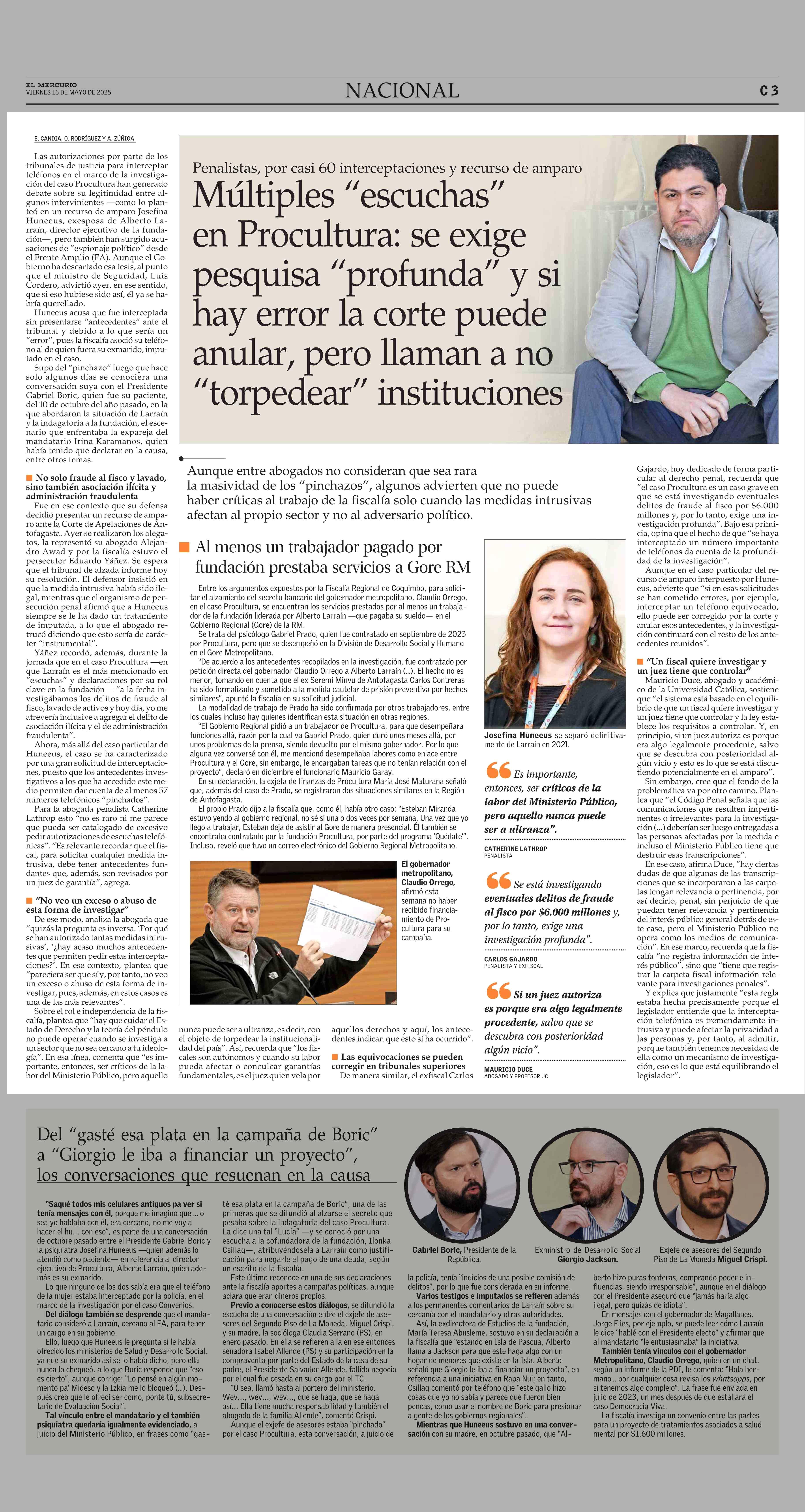 Múltiples “escuchas” en Procultura: se exige pesquisa “profunda” y sl hay error la corte puede anular, pero llaman a no “torpedear” instituciones 16-05-2025 El Mercurio |