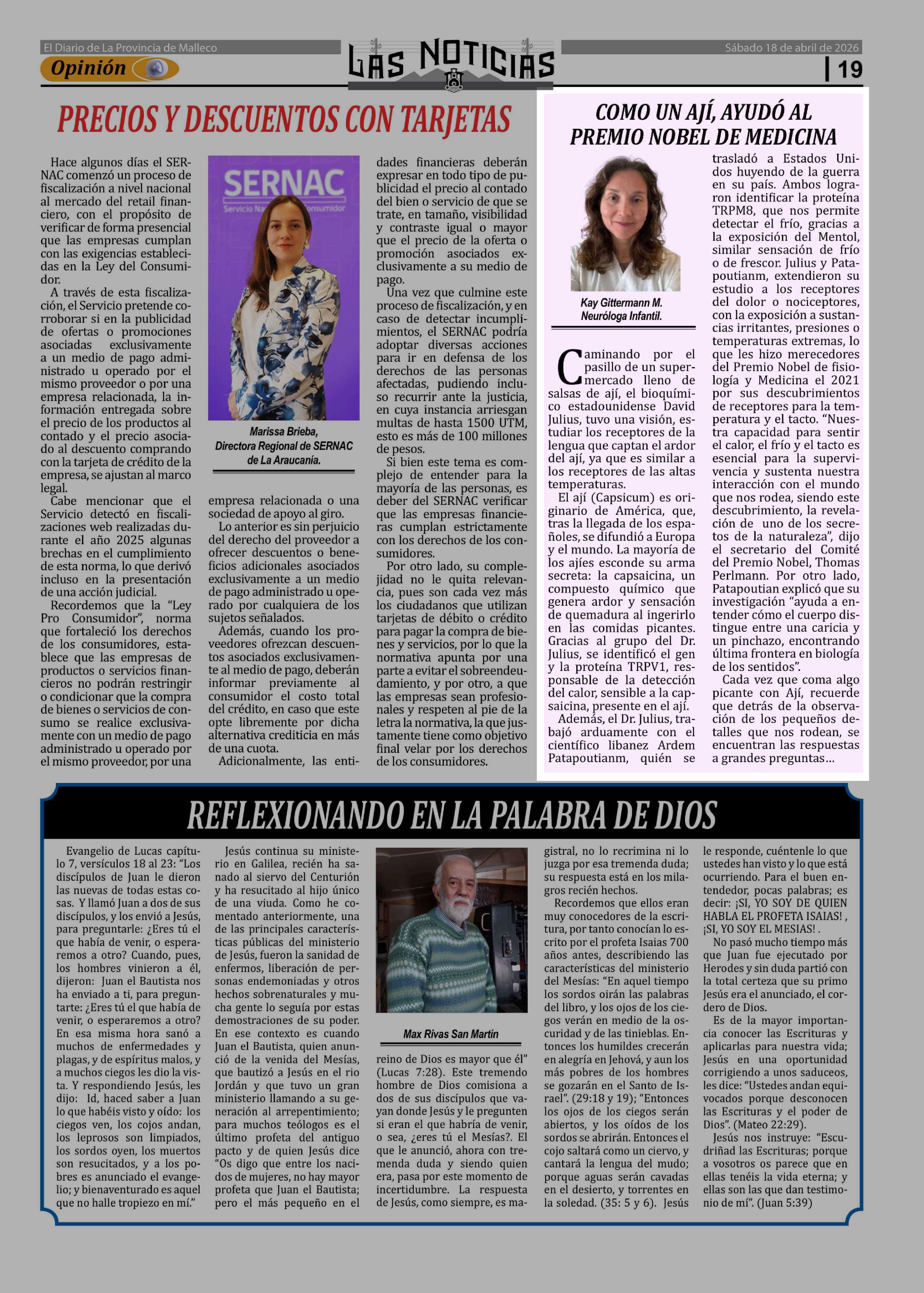 Columnas de Opinión: COMO UN AJÍ, AYUDÓ AL PREMIO NOBEL DE MEDICINA 18-04-2026 Las Noticias |
