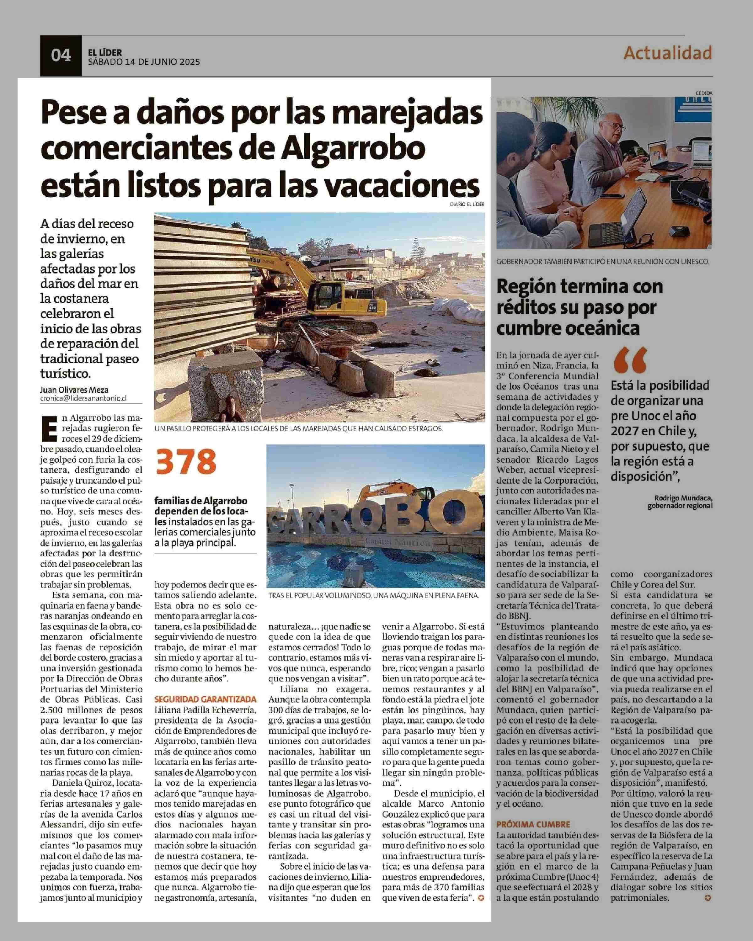 Pese a daños por las marejadas comerciantes de Algarrobo están listos para las vacaciones 14-06-2025 El Líder |