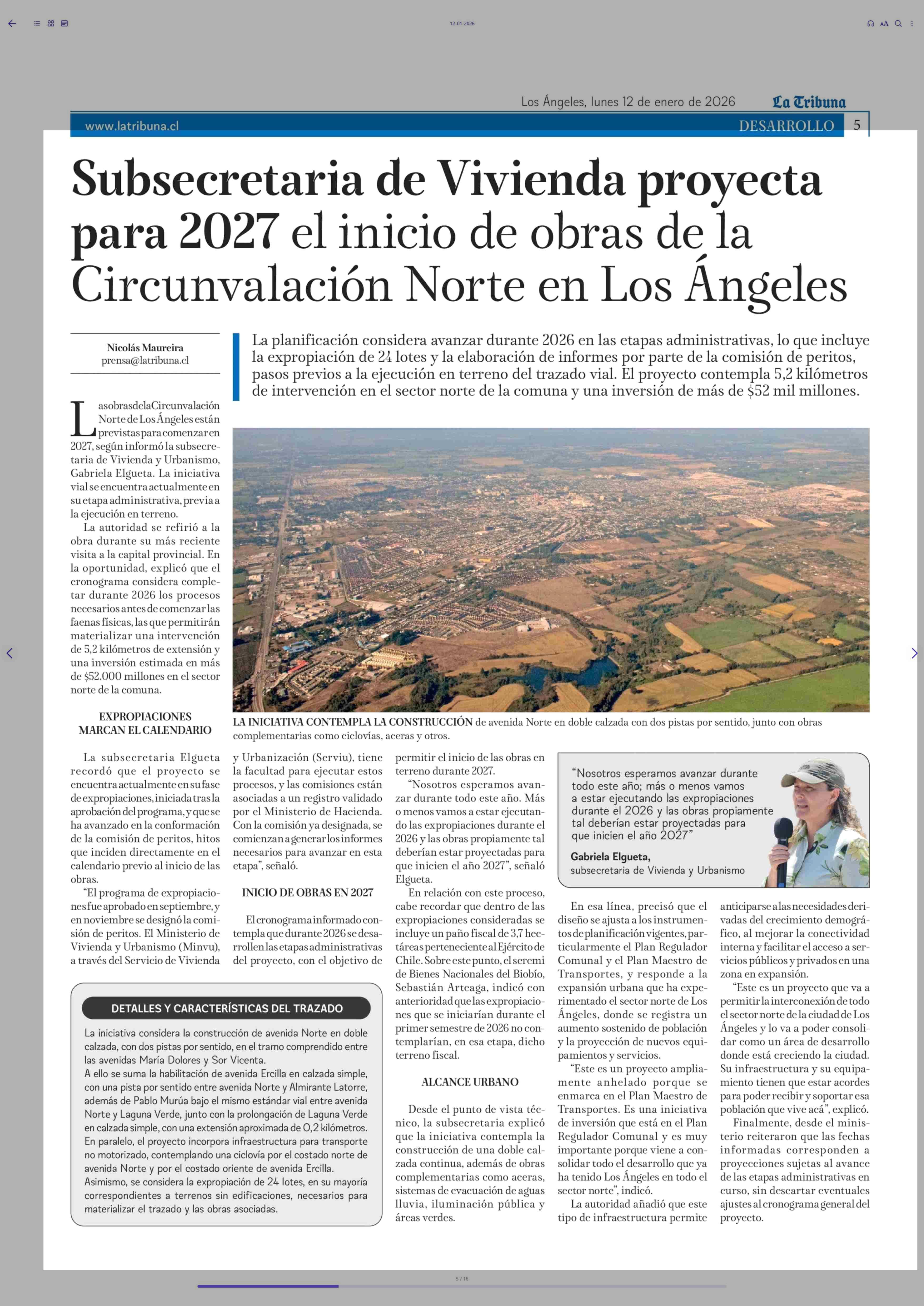 Subsecretaria de Vivienda proyecta para 2027 el inicio de obras la Circunvalación Norte en Los Angeles 12-01-2026 La Tribuna |