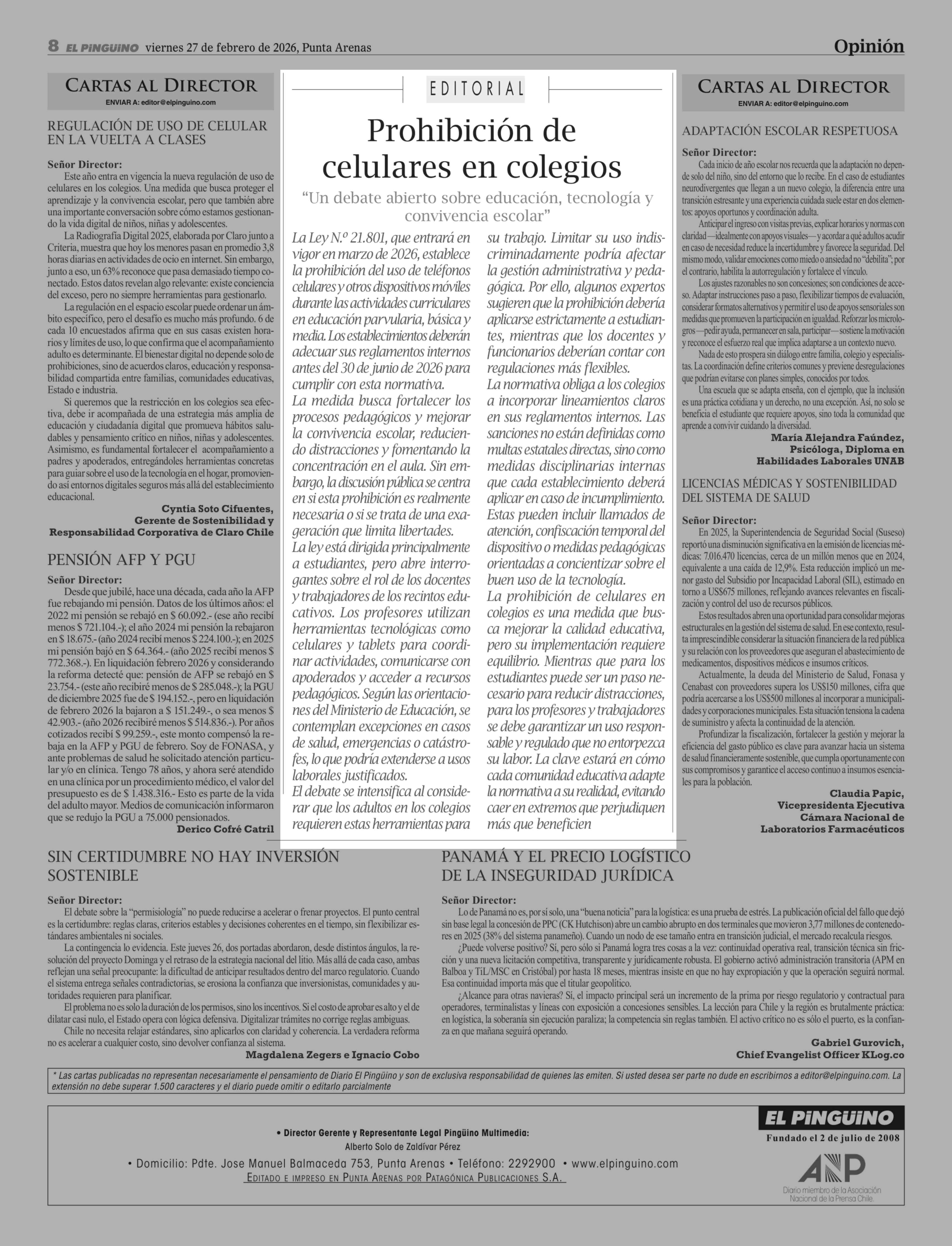 Fecha: 27-02-2026 Sector: Editorial Región: Región de Magallanes y de la Antártica Chilena