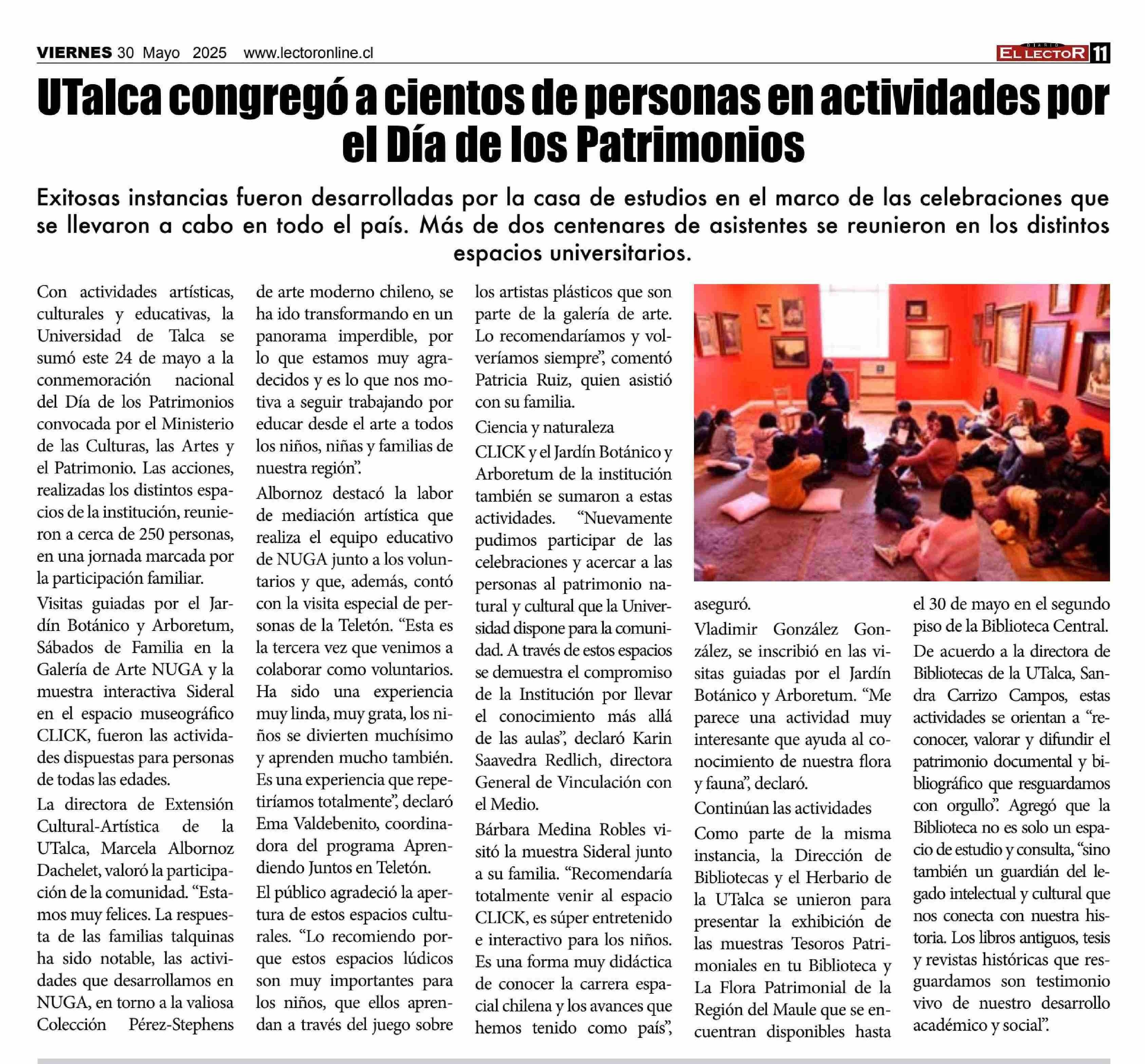 UTalca congregó a cientos de personas en actividades por el Día de los Patrimonios 30-05-2025 El Lector |