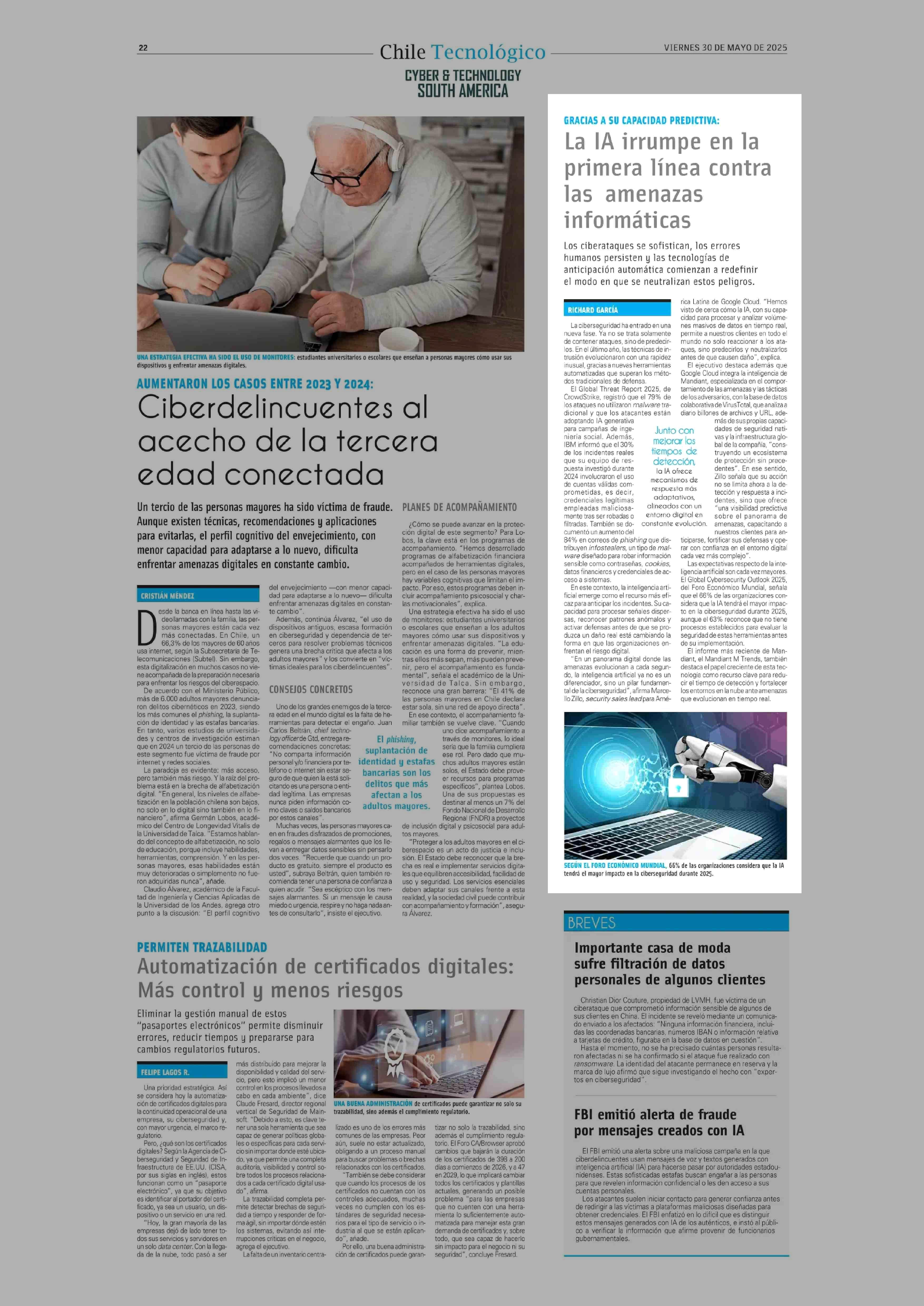 La lA irrumpe en la primera línea contra las amenazas informáticas 30-05-2025 El Mercurio |