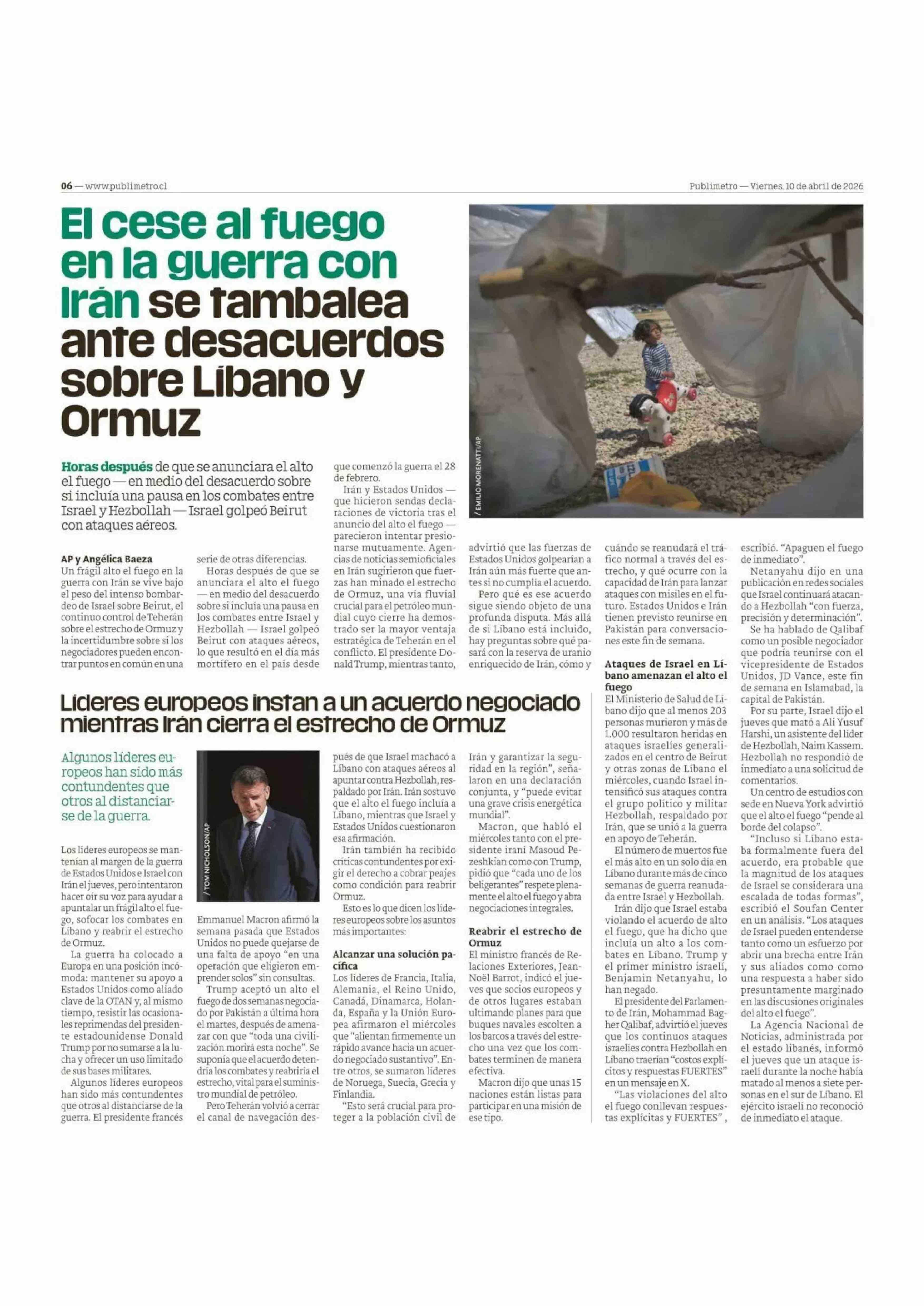 Título: El cese al fuego en la guerra con Iran se tambalea ante desacuerdos sobre Libano y ormuz