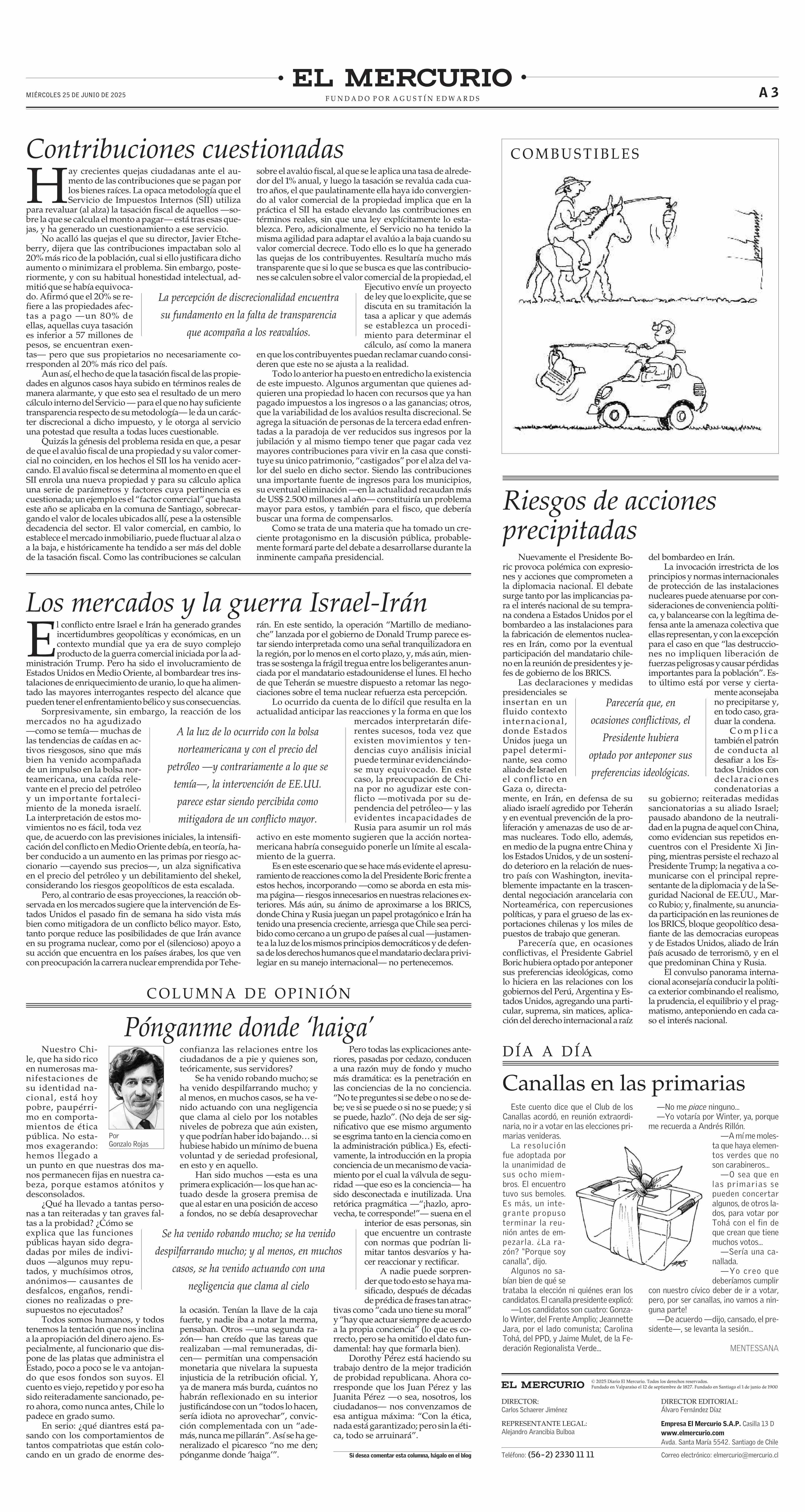 Editorial: Contribuciones cuestionadas 25-06-2025 El Mercurio |