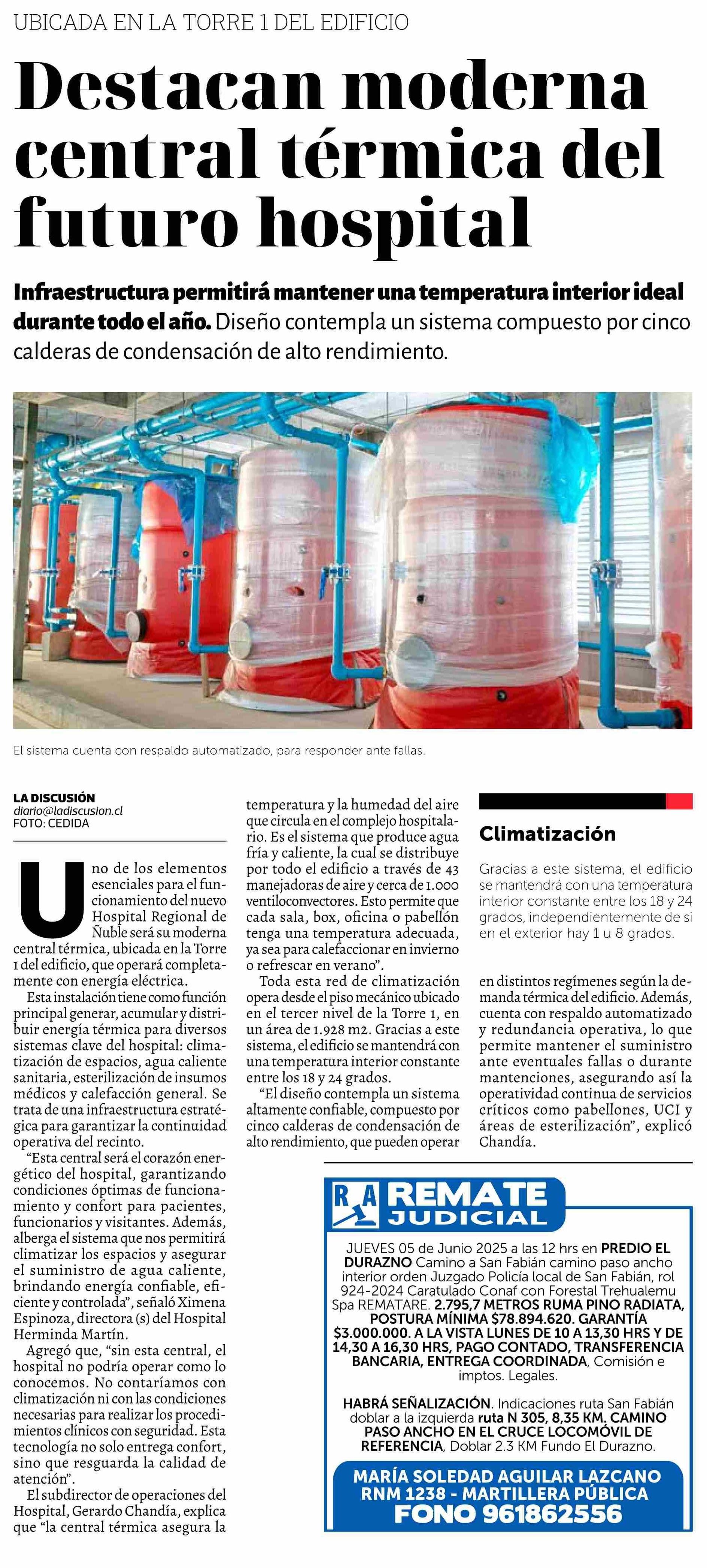 Destacan moderna central térmica del futuro hospital 02-06-2025 La Discusión |