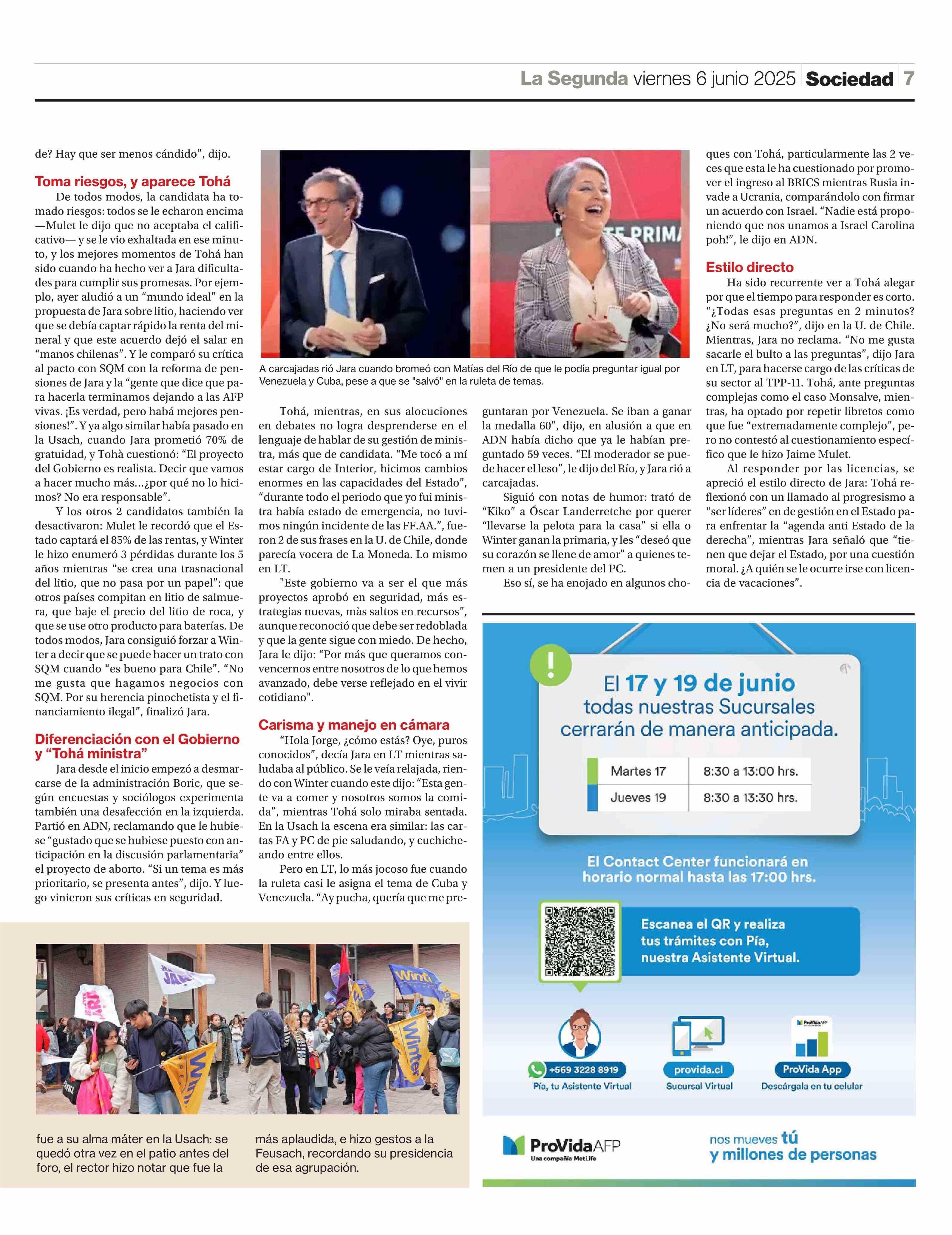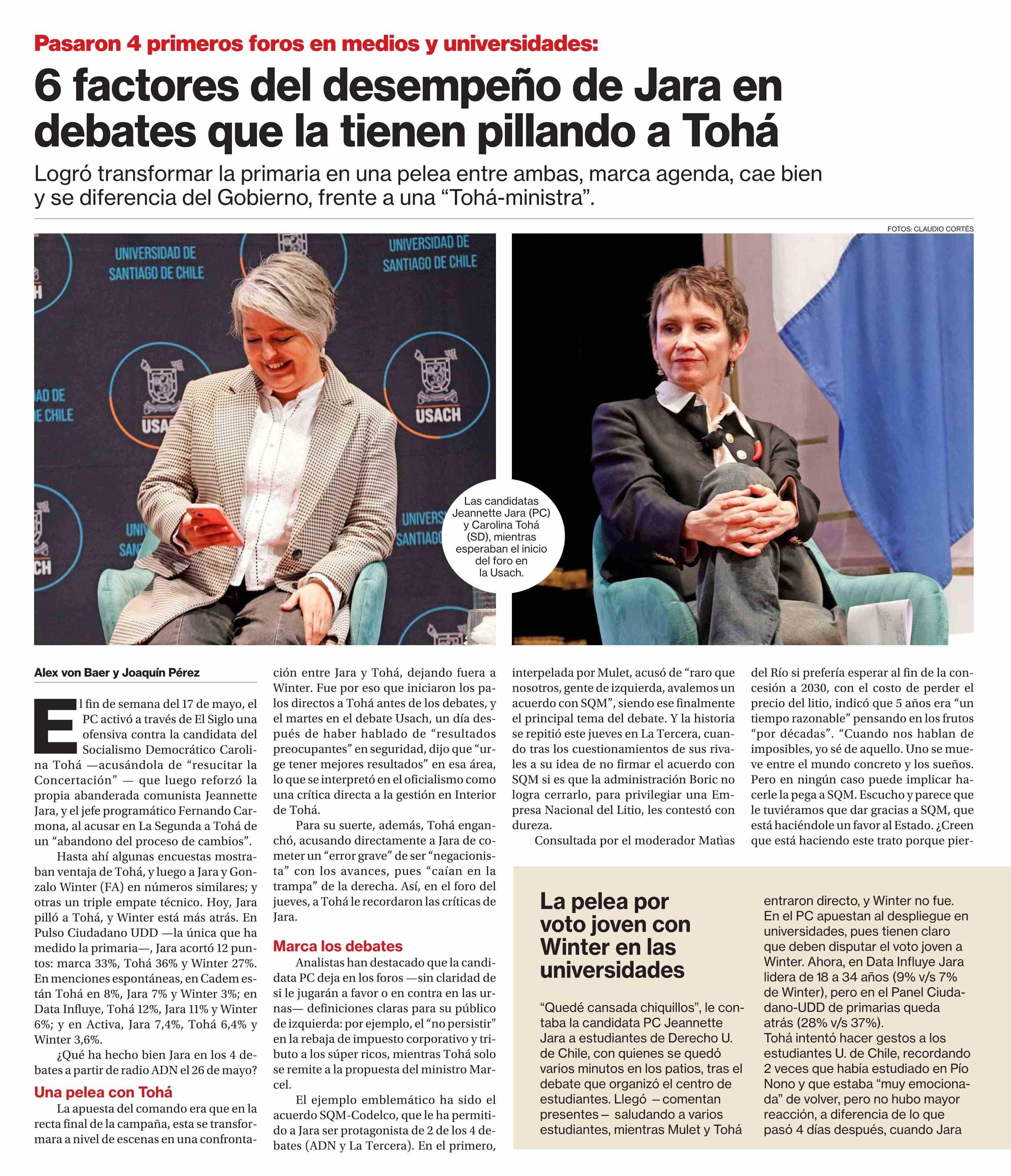 6 factores del desempeño de Jara en debates que la tienen pillando a Tohá 06-06-2025 La Segunda |
