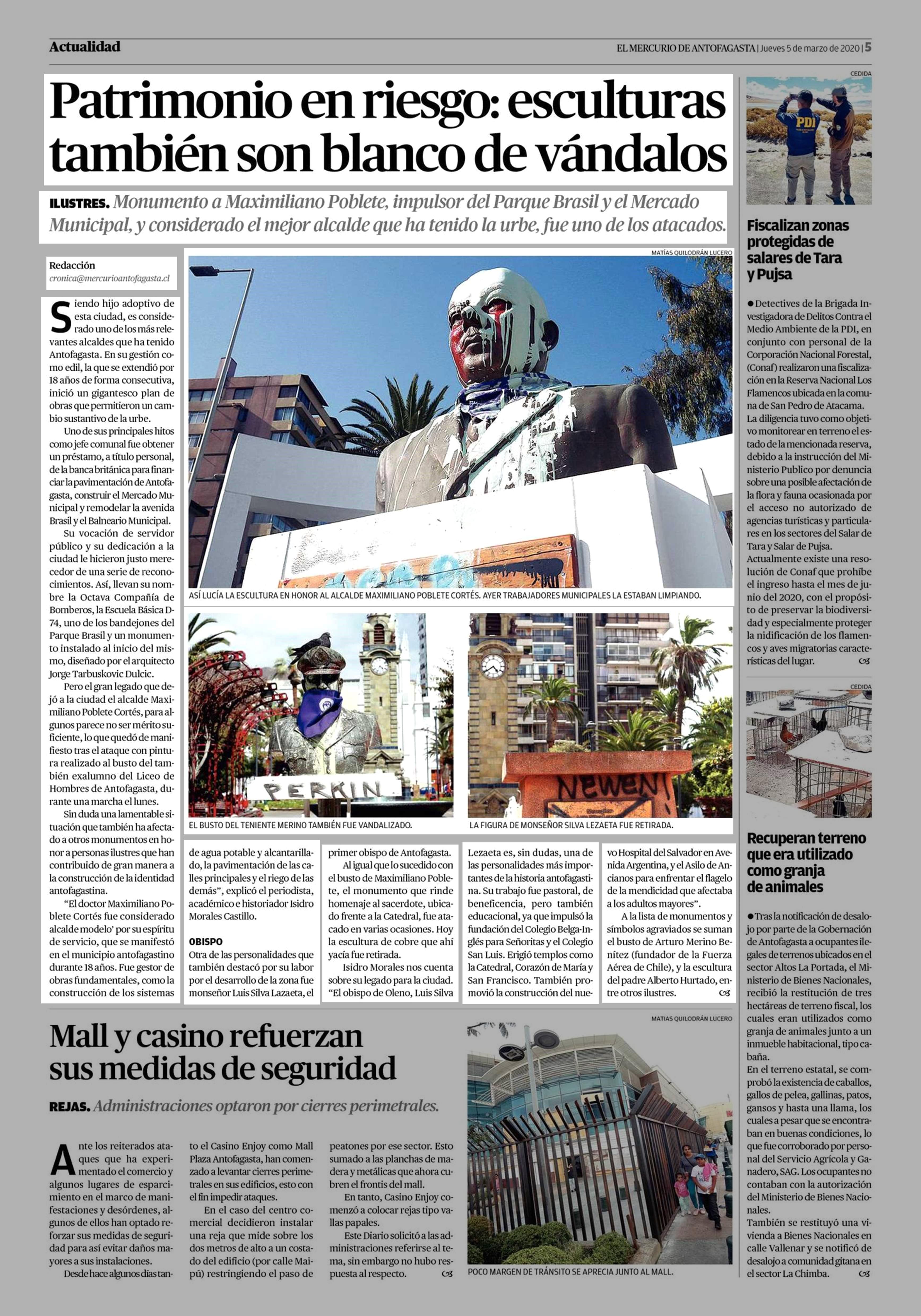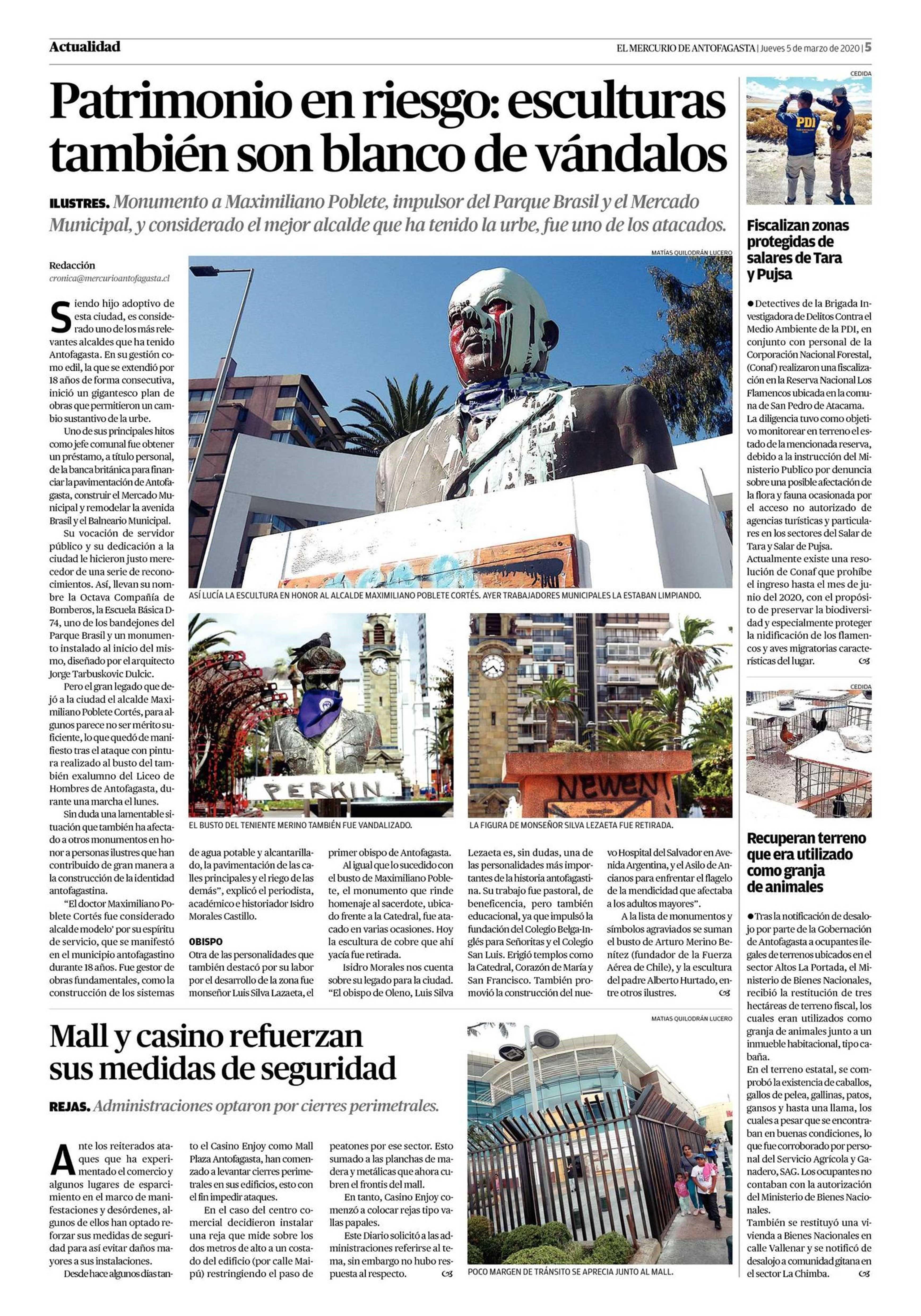 Patrimonio en riesgo: esculturas también son blanco de vándalos 05-03-2020 El Mercurio de Antofagasta |