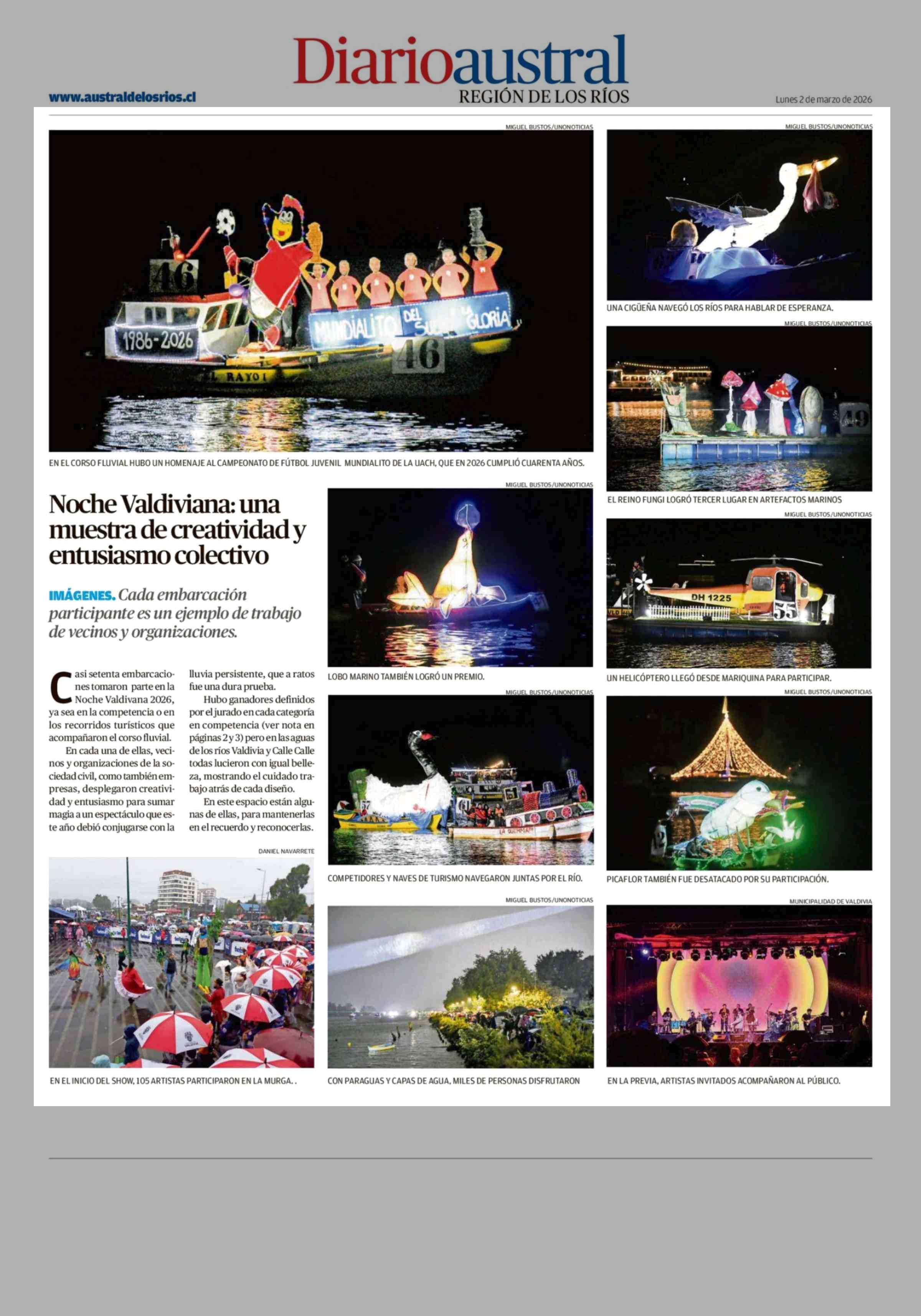 Noche Valdiviana: una muestra de creatividad y entusiasmo colectivo 02-03-2026 Diario Austral Región de Los Ríos |