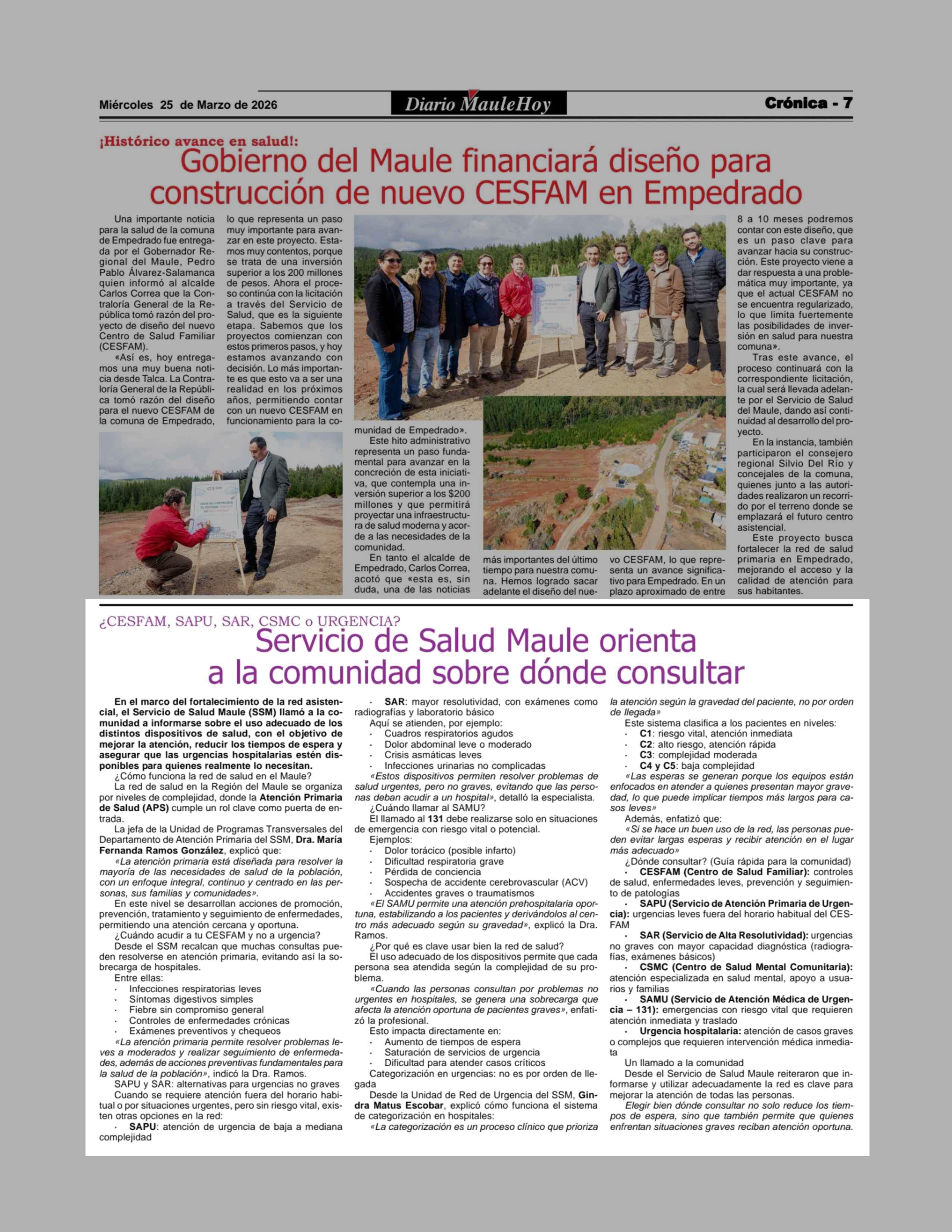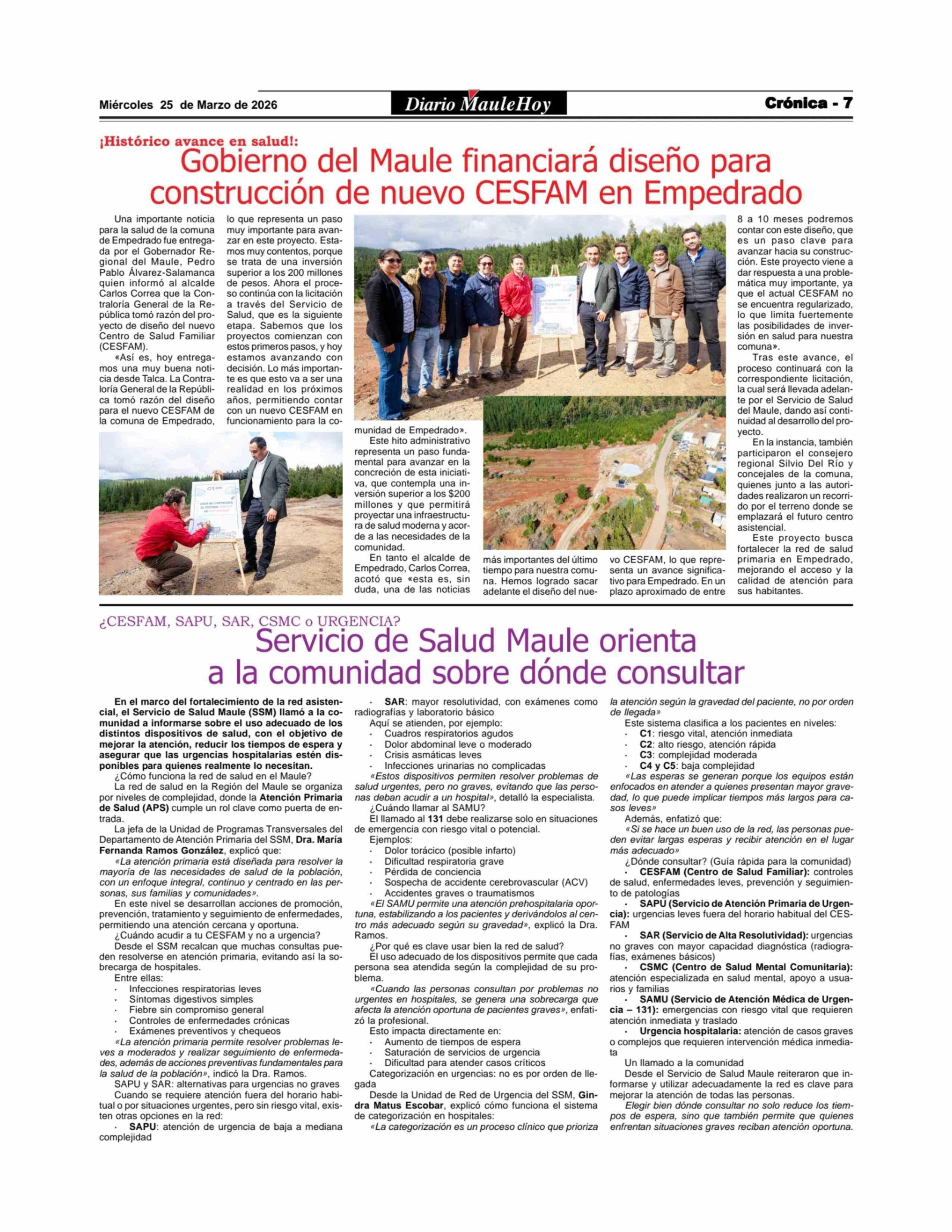 Servicio de Salud Maule orienta a la comunidad sobre dónde consultar 25-03-2026 Maule Hoy |