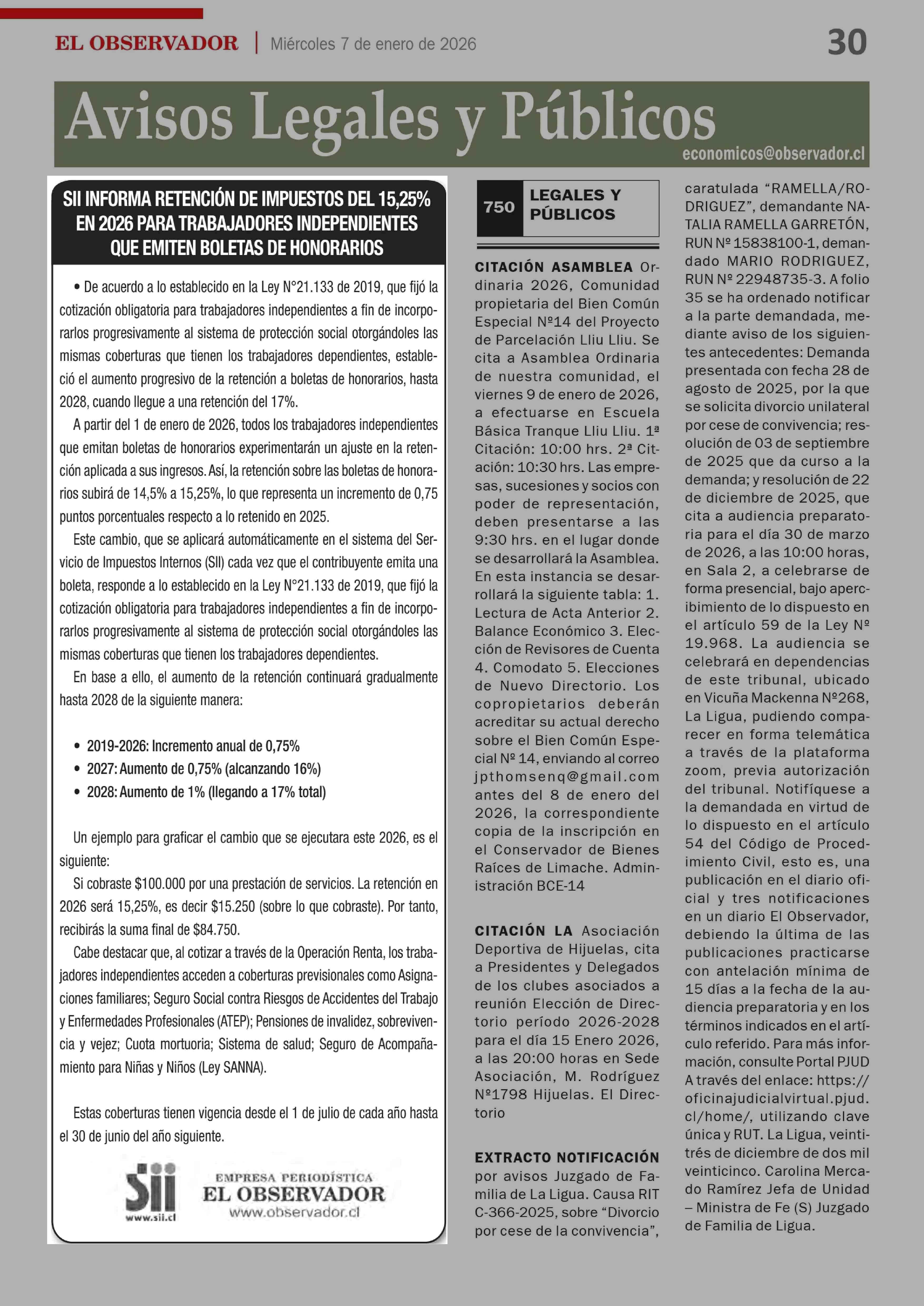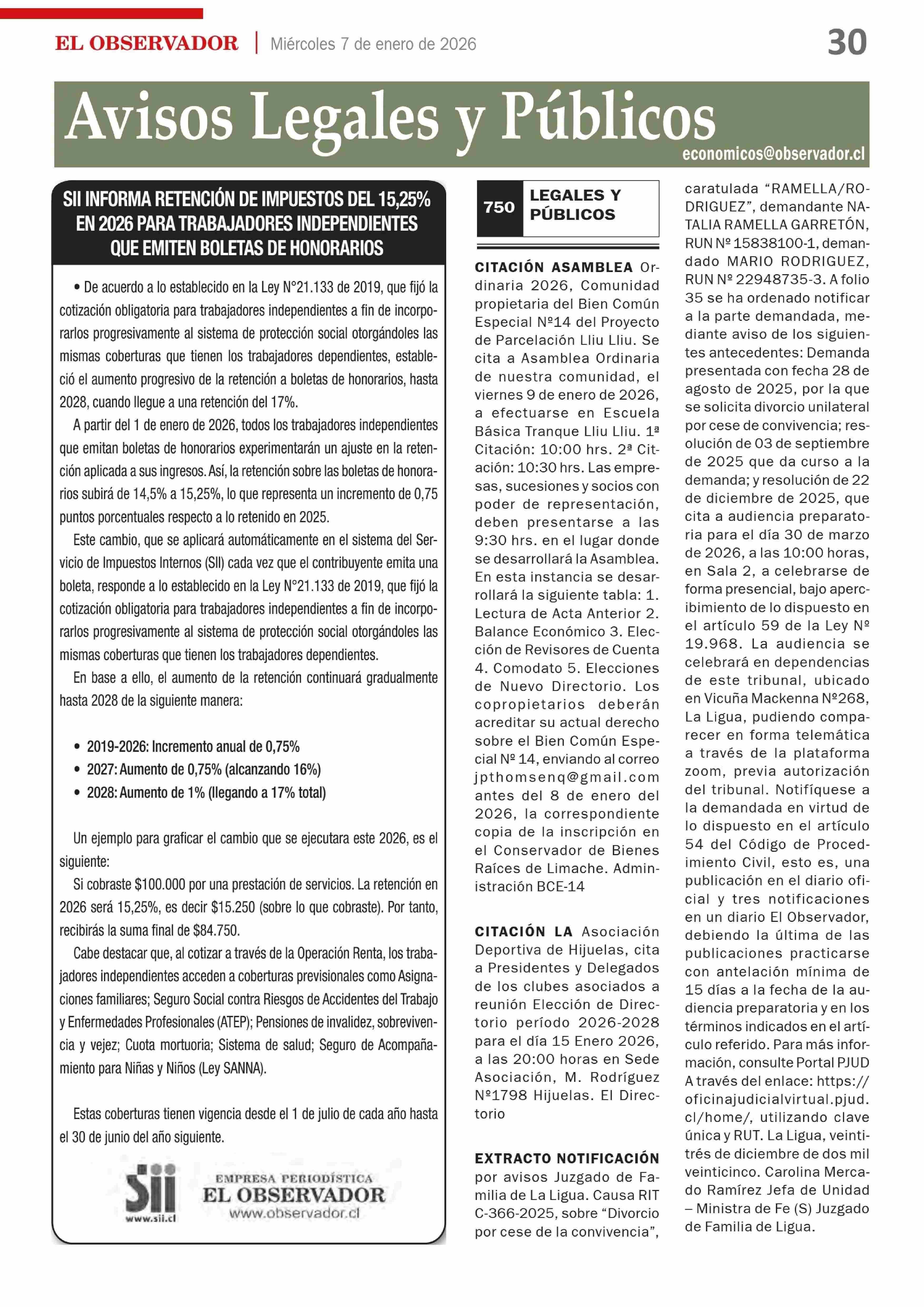 Extractos: SERVICIO DE IMPUESTOS INTERNOS 07-01-2026 El Observador Vespertino |