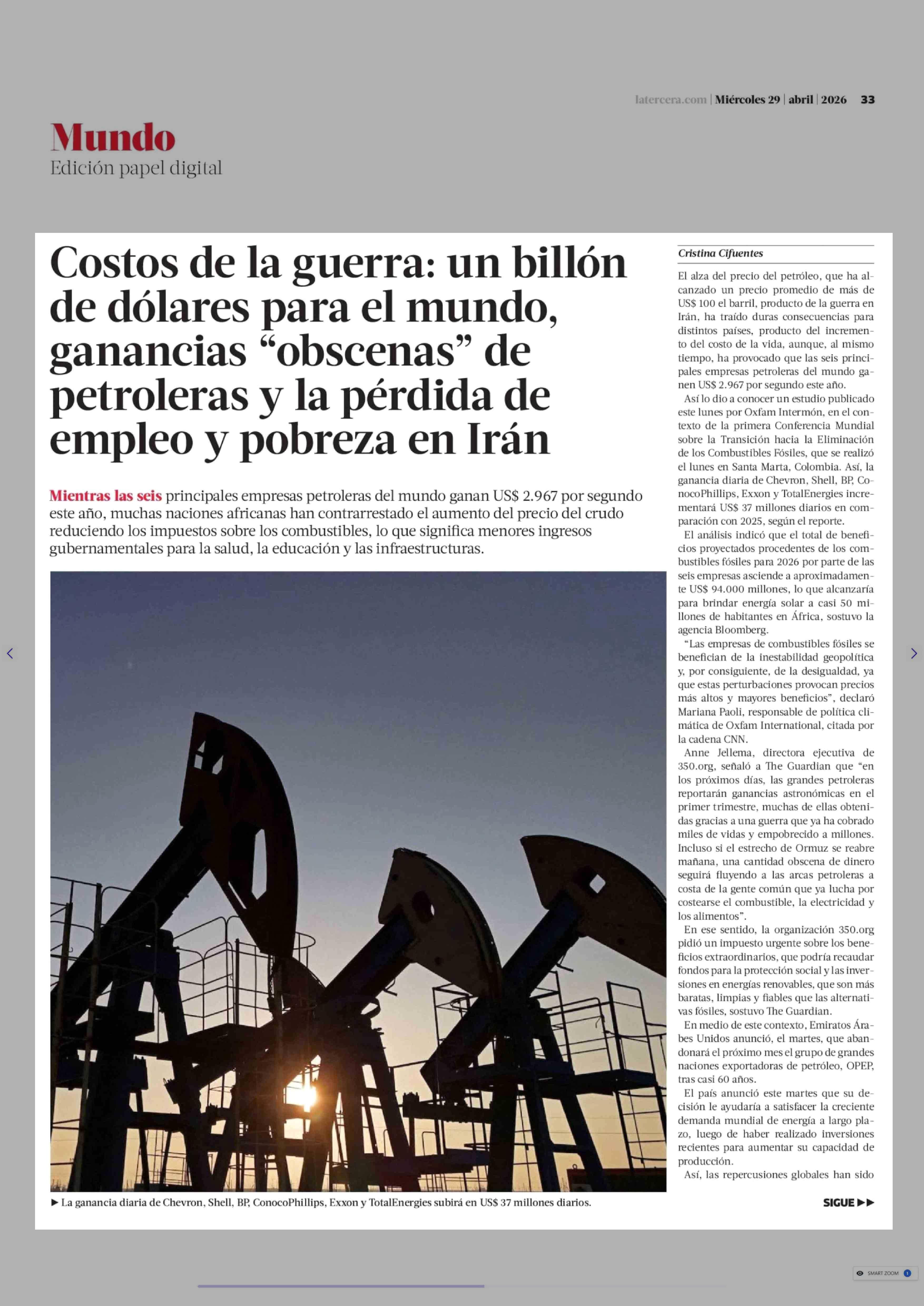 Título: Costos de la guerra: un billón de dólares para el mundo, ganancias "obscenas" de petroleras y la pérdida de empleo y pobreza en Irán