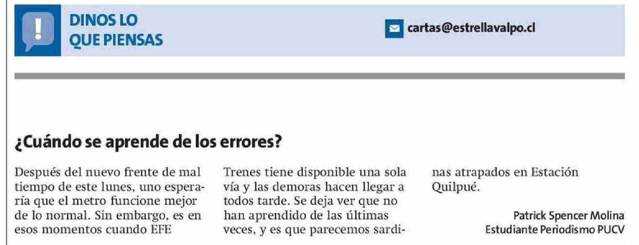 Cartas: ¿Cuándo se aprende de los errores? 19-06-2025 La Estrella de Quillota |