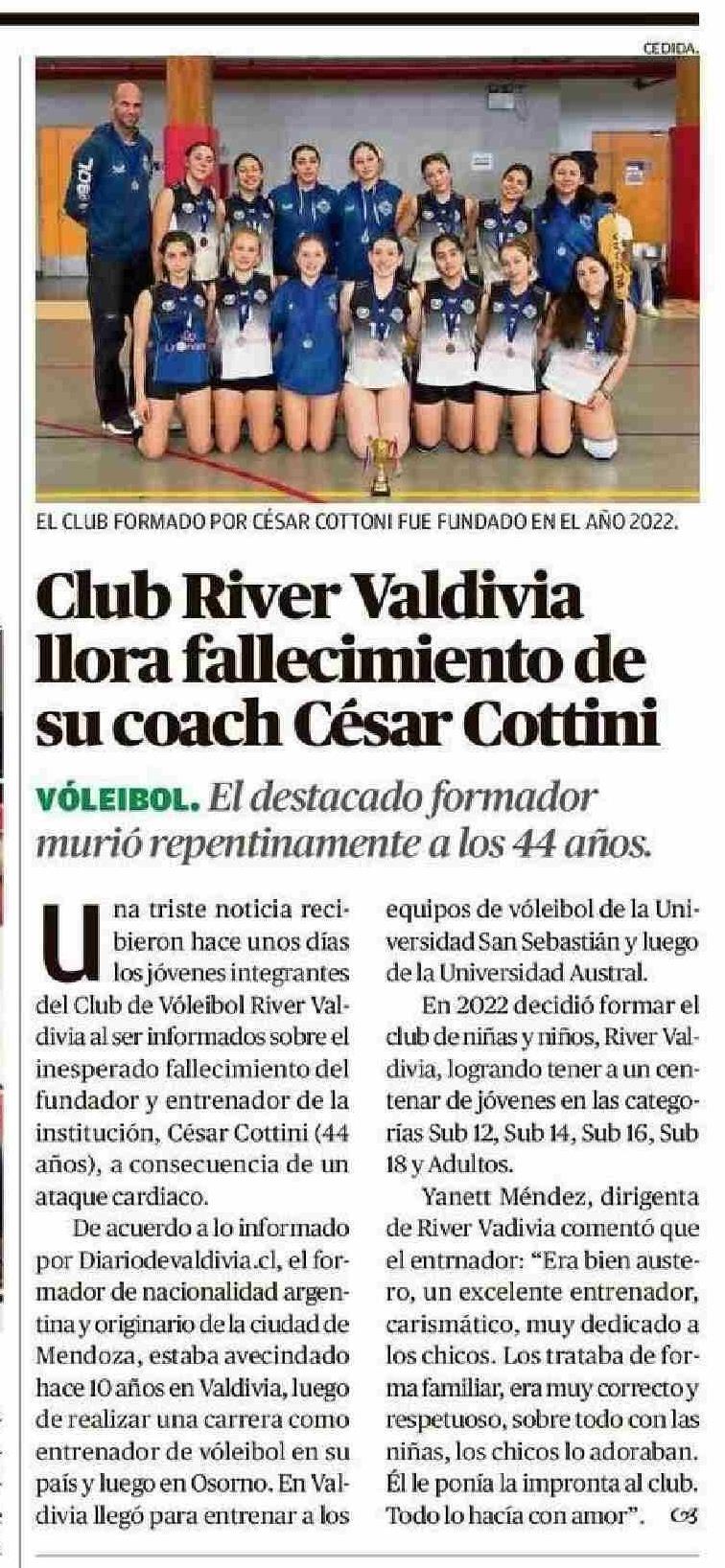 Título: Club River Valdivia llora fallecimiento de su coach César Cottini
