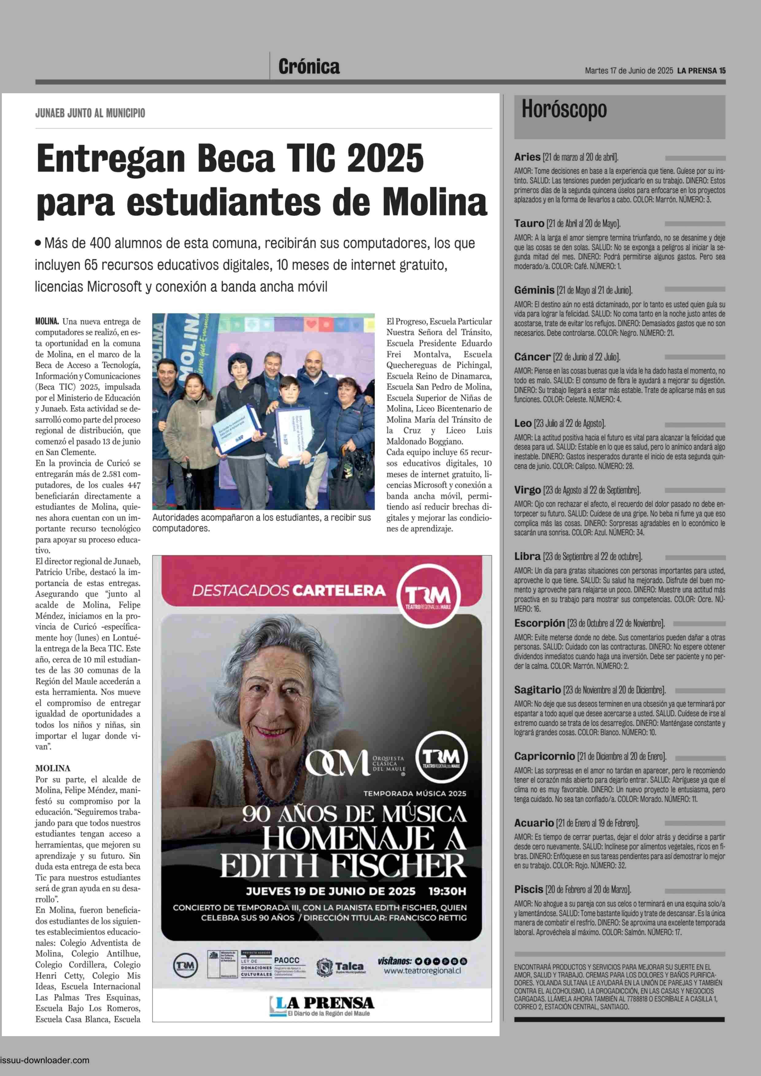 Entregan Beca TIC 2025 vara estudiantes de Molina 17-06-2025 La Prensa de Curicó |