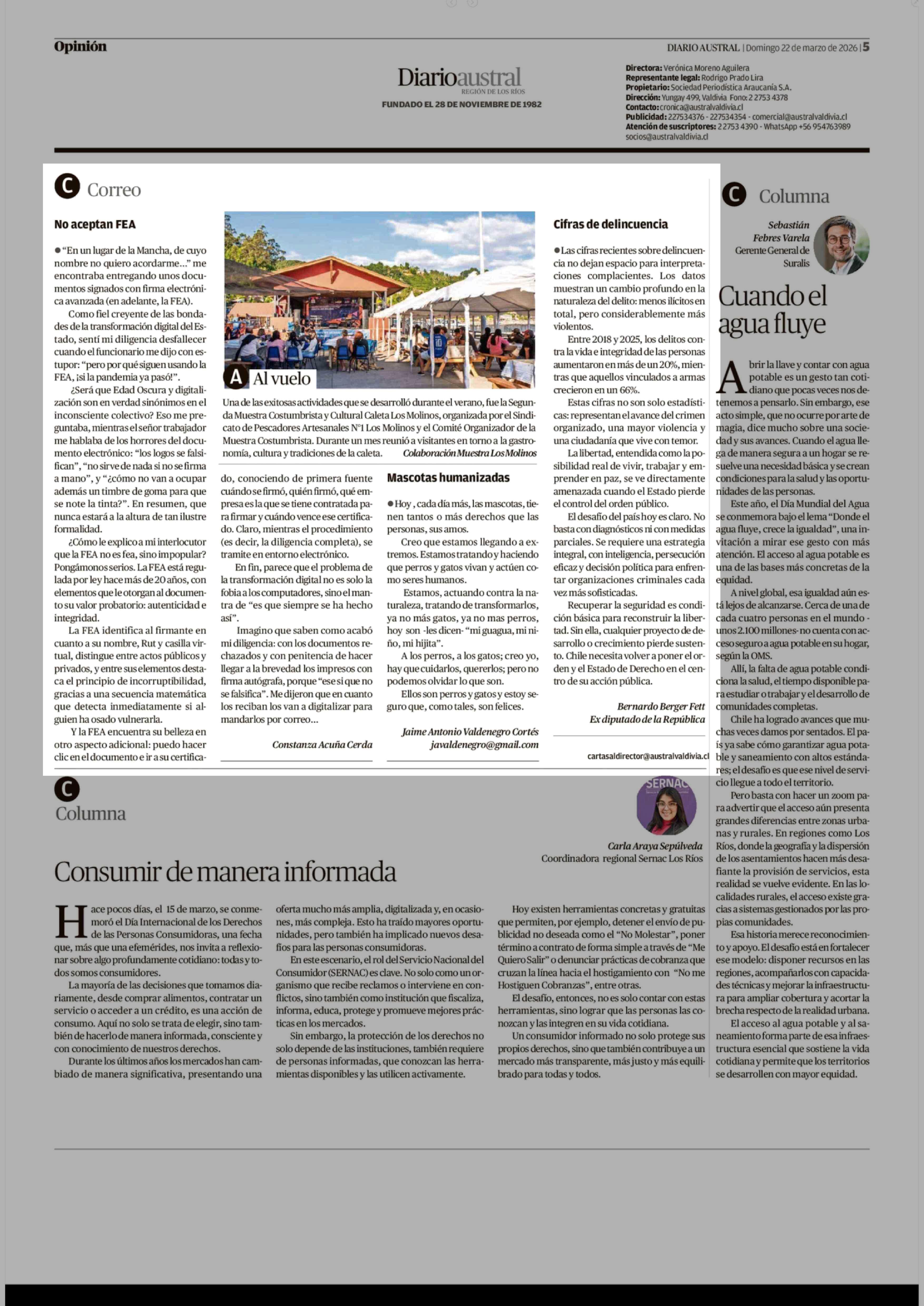 Cartas: No aceptan FEA 22-03-2026 Diario Austral Región de Los Ríos |