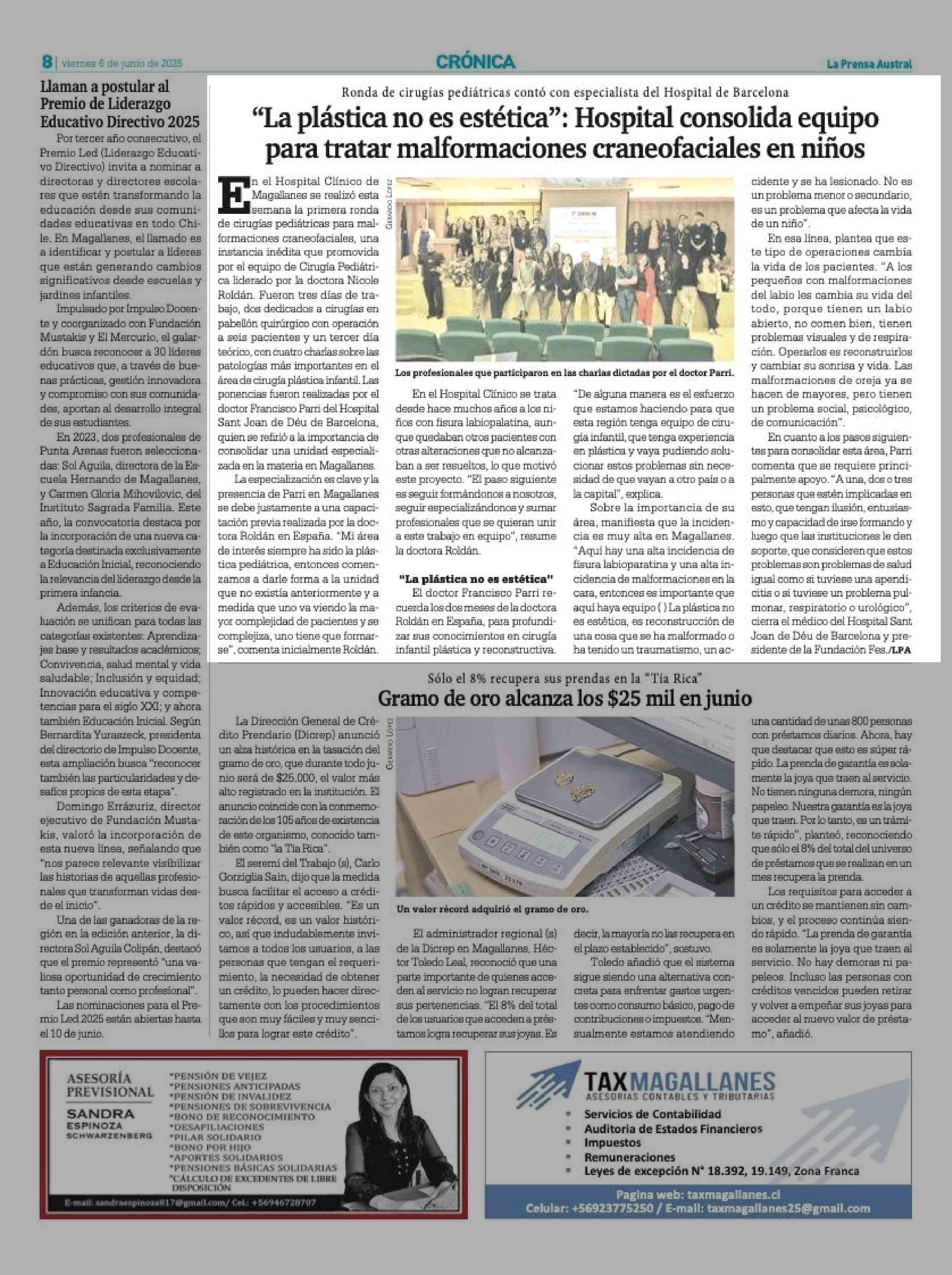 “La plástica no es estética”: Hospital consolida equipo para tratar malformaciones craneofaciales en niños 06-06-2025 La Prensa Austral |