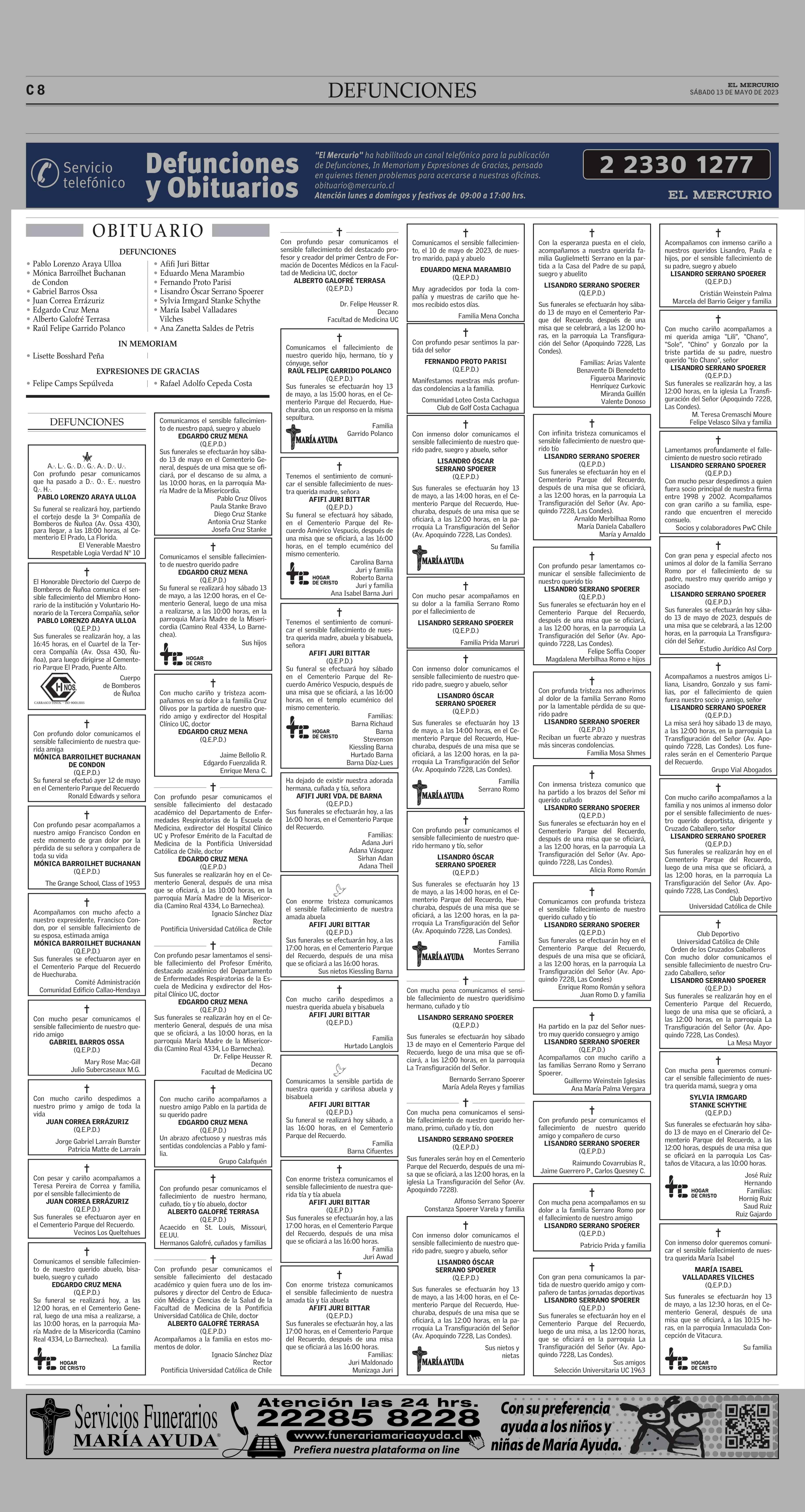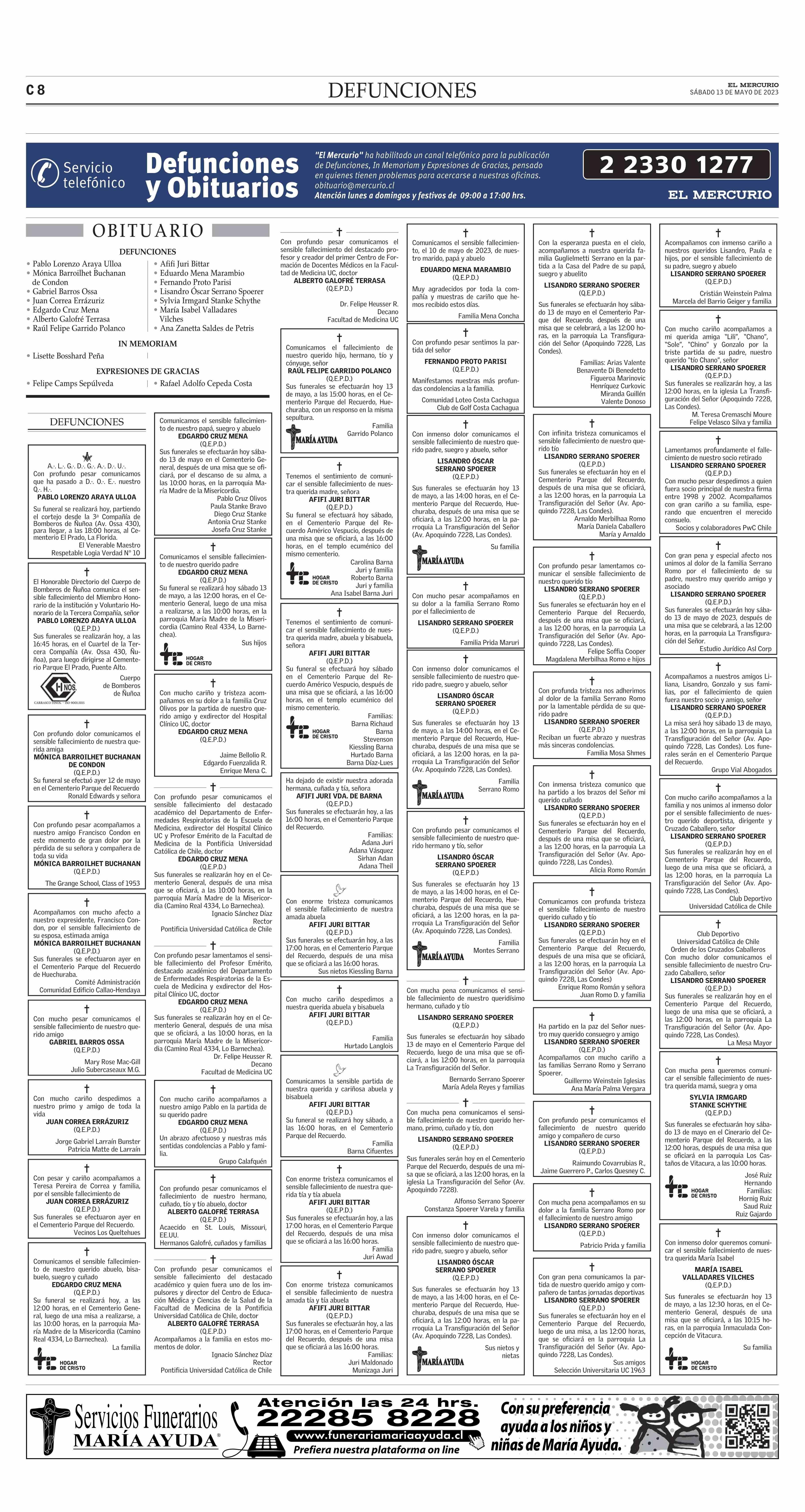 O B I T U A R I O 13-05-2023 El Mercurio |
