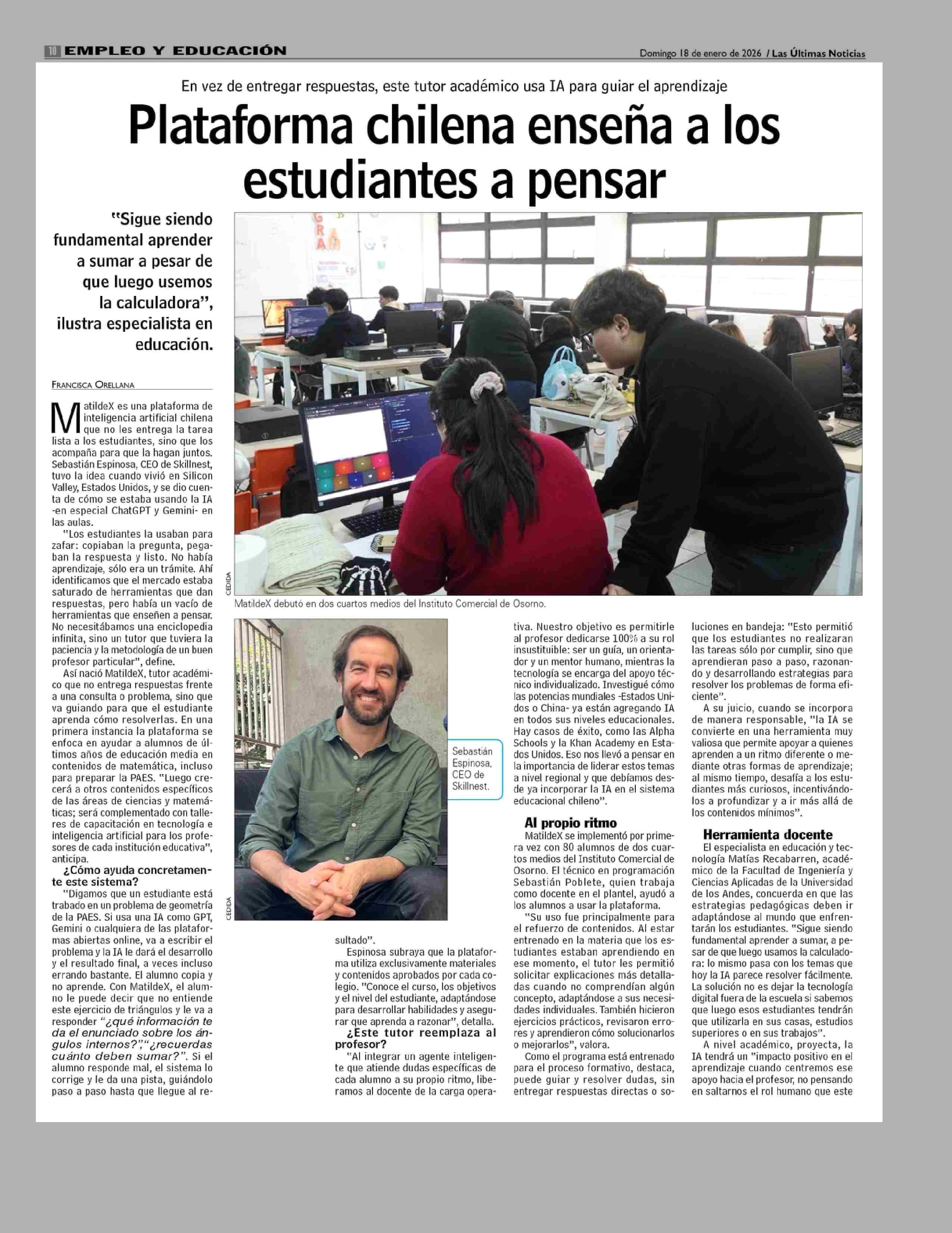 Plataforma chilena enseña a los estudiantes a pensar 18-01-2026 Las Últimas Noticias |