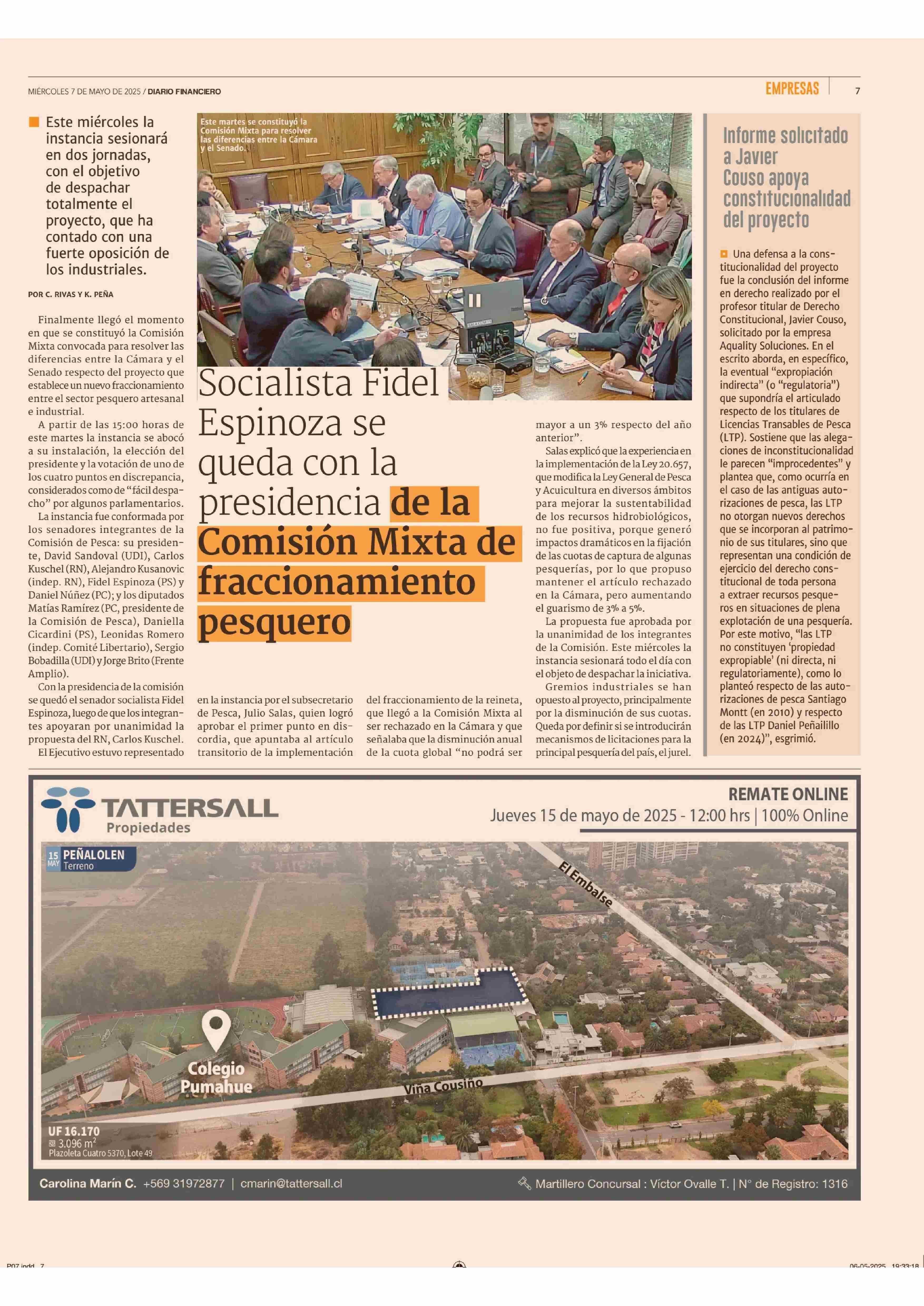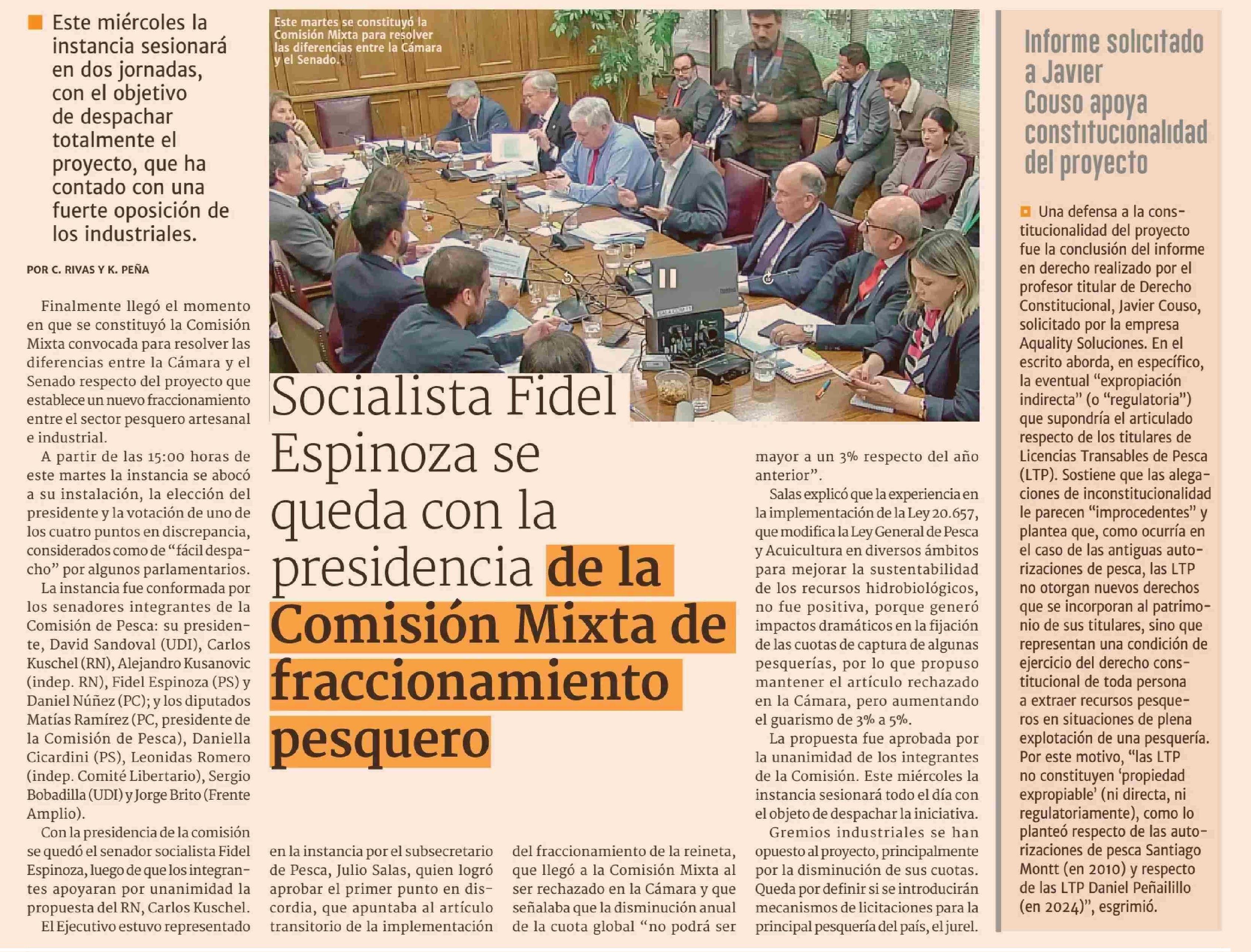 Soclalista Fidel Espinoza se queda con la presidencia de la Comisión Mixta de fraccionamiento pesquero 07-05-2025 Diario Financiero |