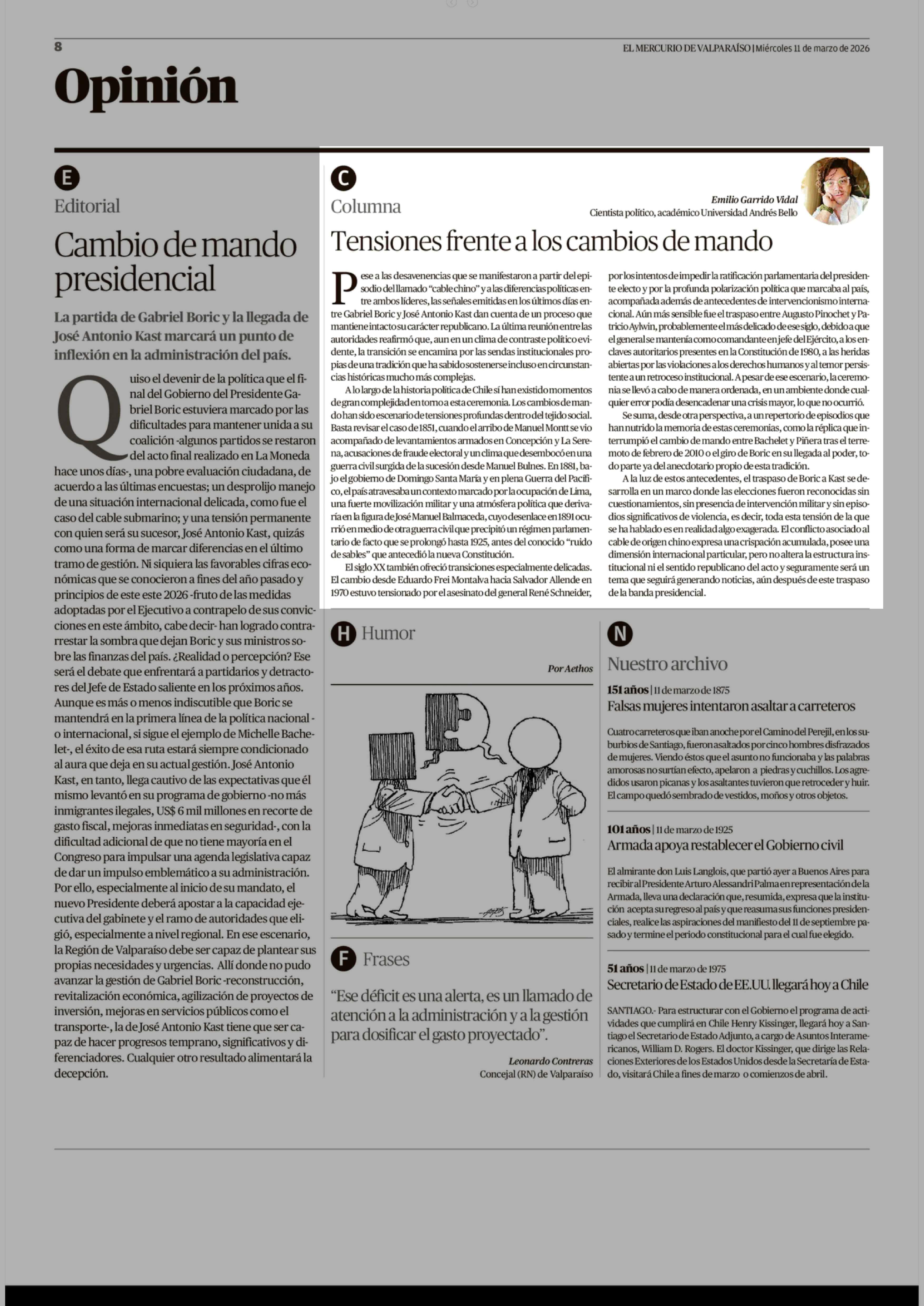 Fecha: 11-03-2026 Sector: Columnas de Opinión Región: Región de Valparaíso