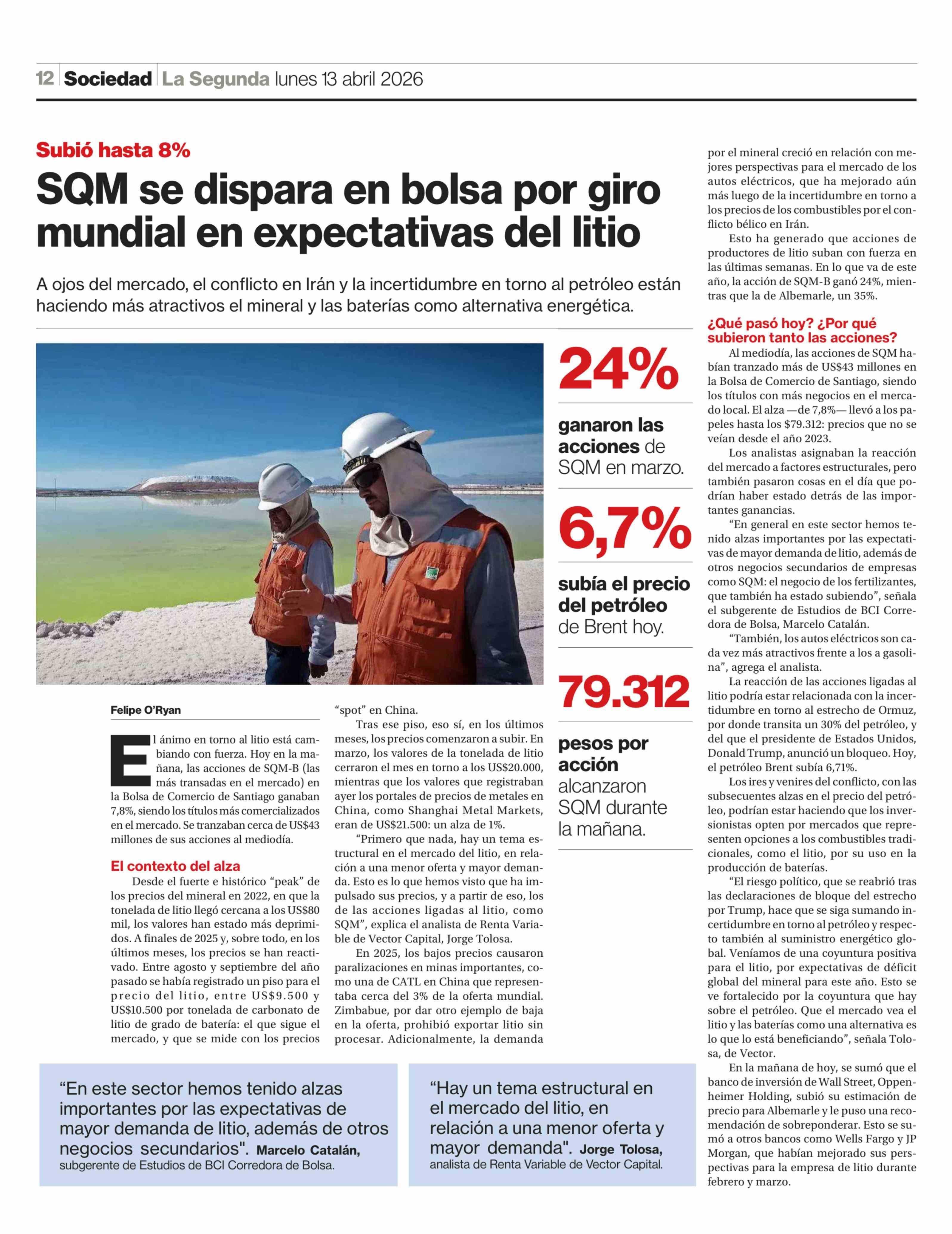 Título: SQM se dispara en bolsa por giro mundial en expectativas del litio