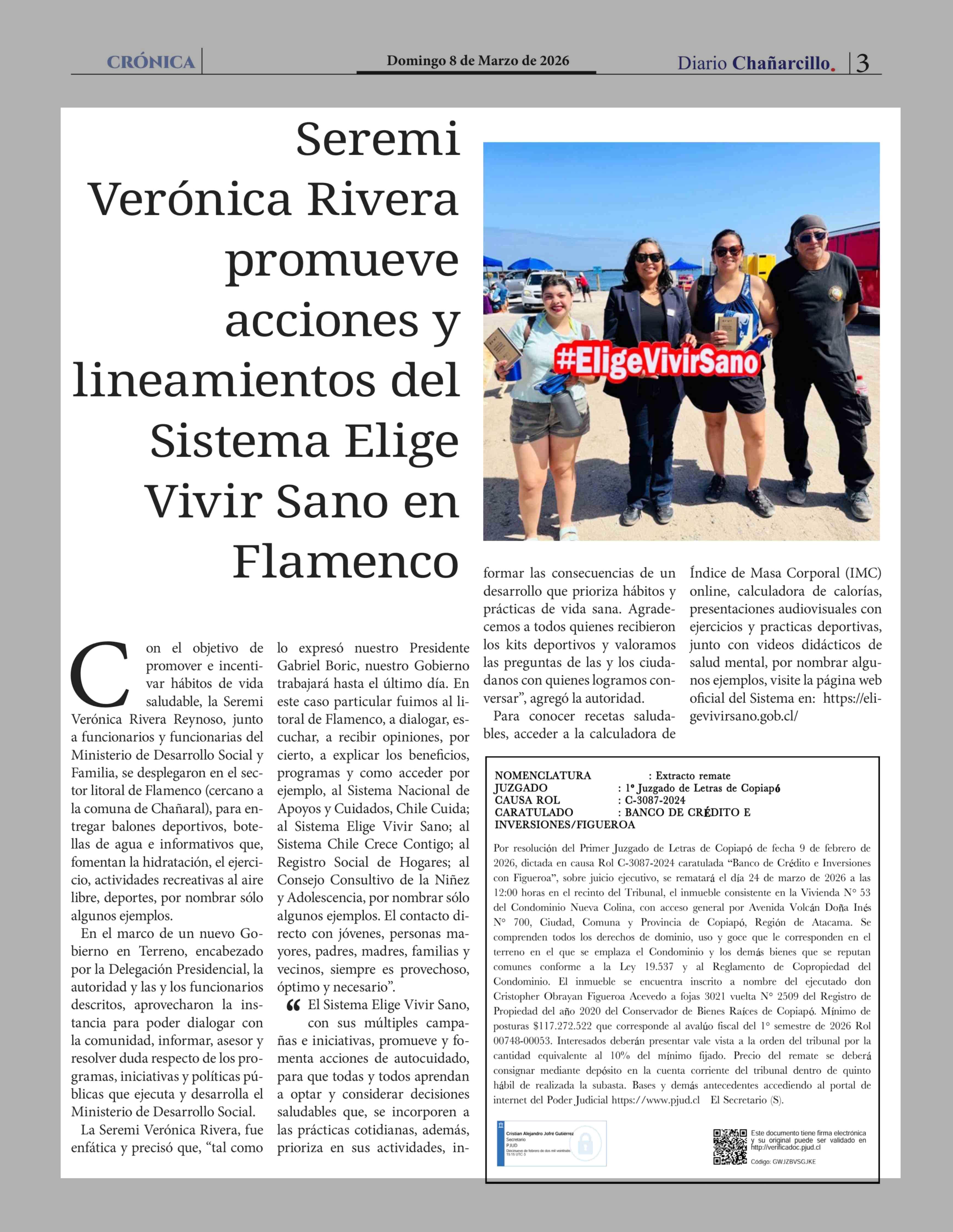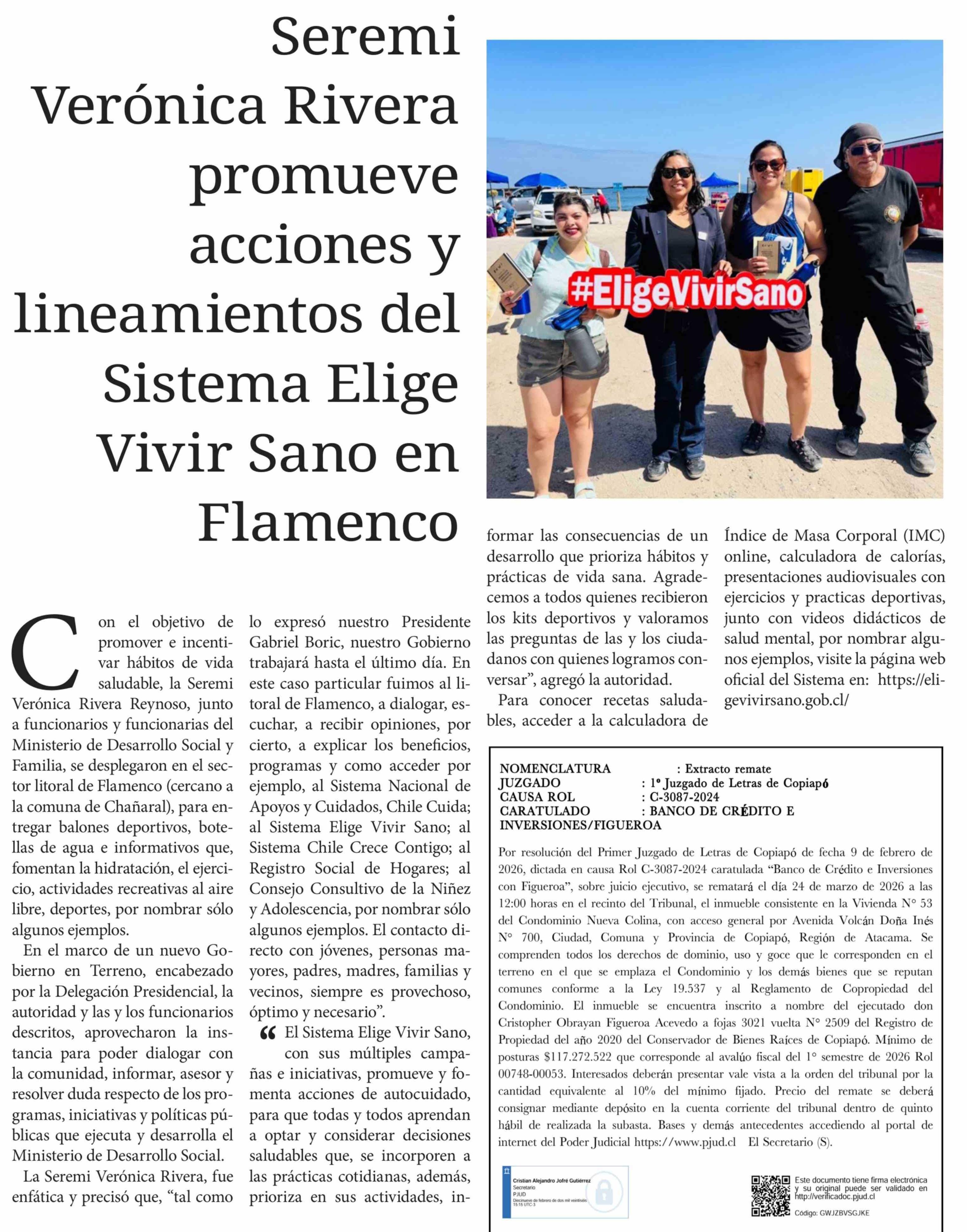 Seremi Verónica Rivera promueve acciones y lineamientos del Sistema Elige Vivir Sano en Flamenco 08-03-2026 Diario Chañarcillo |