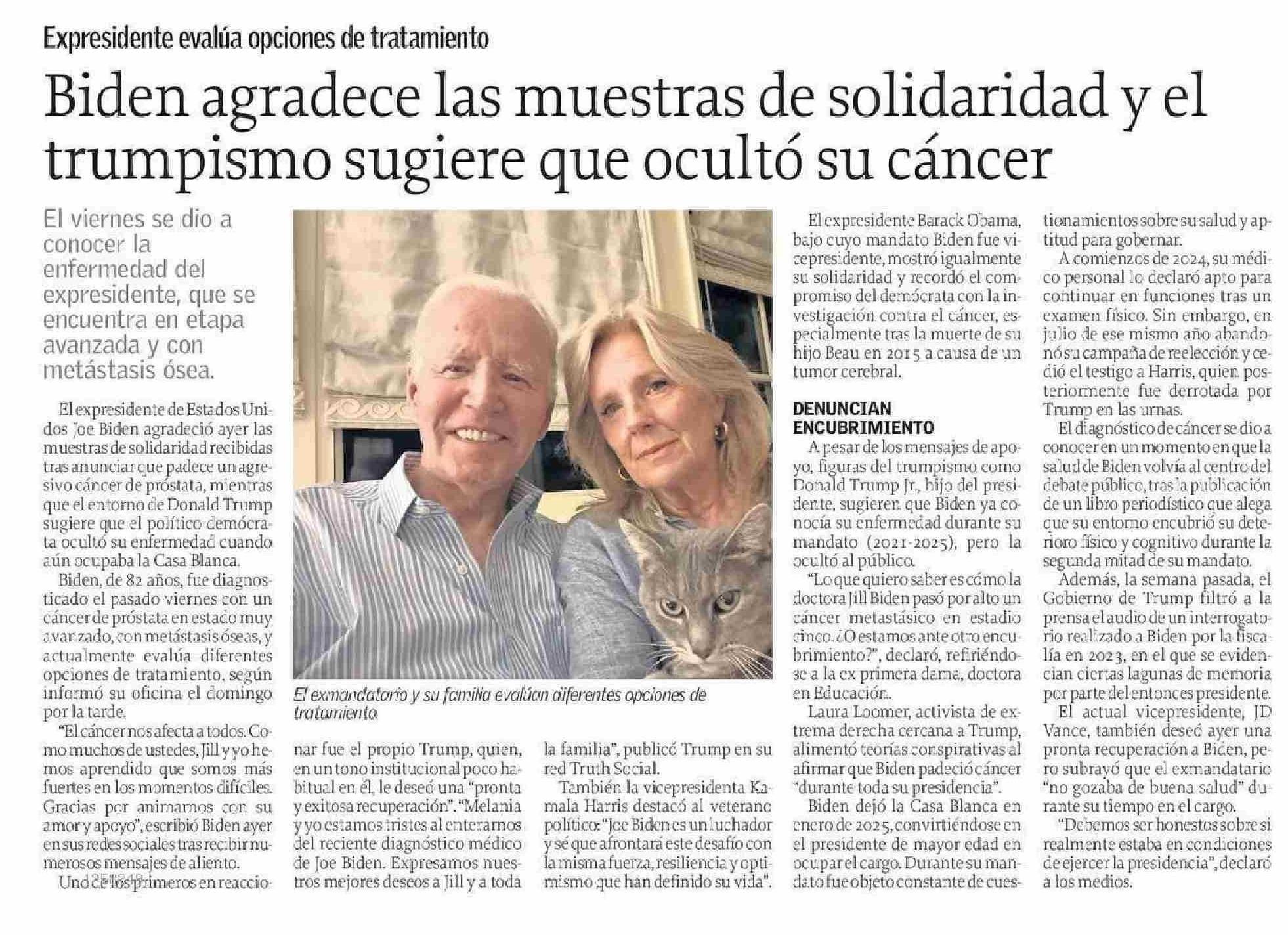 Biden agradece las muestras de solidaridad y el trumpismo sugiere que ocultó su cáncer 20-05-2025 El Sur |