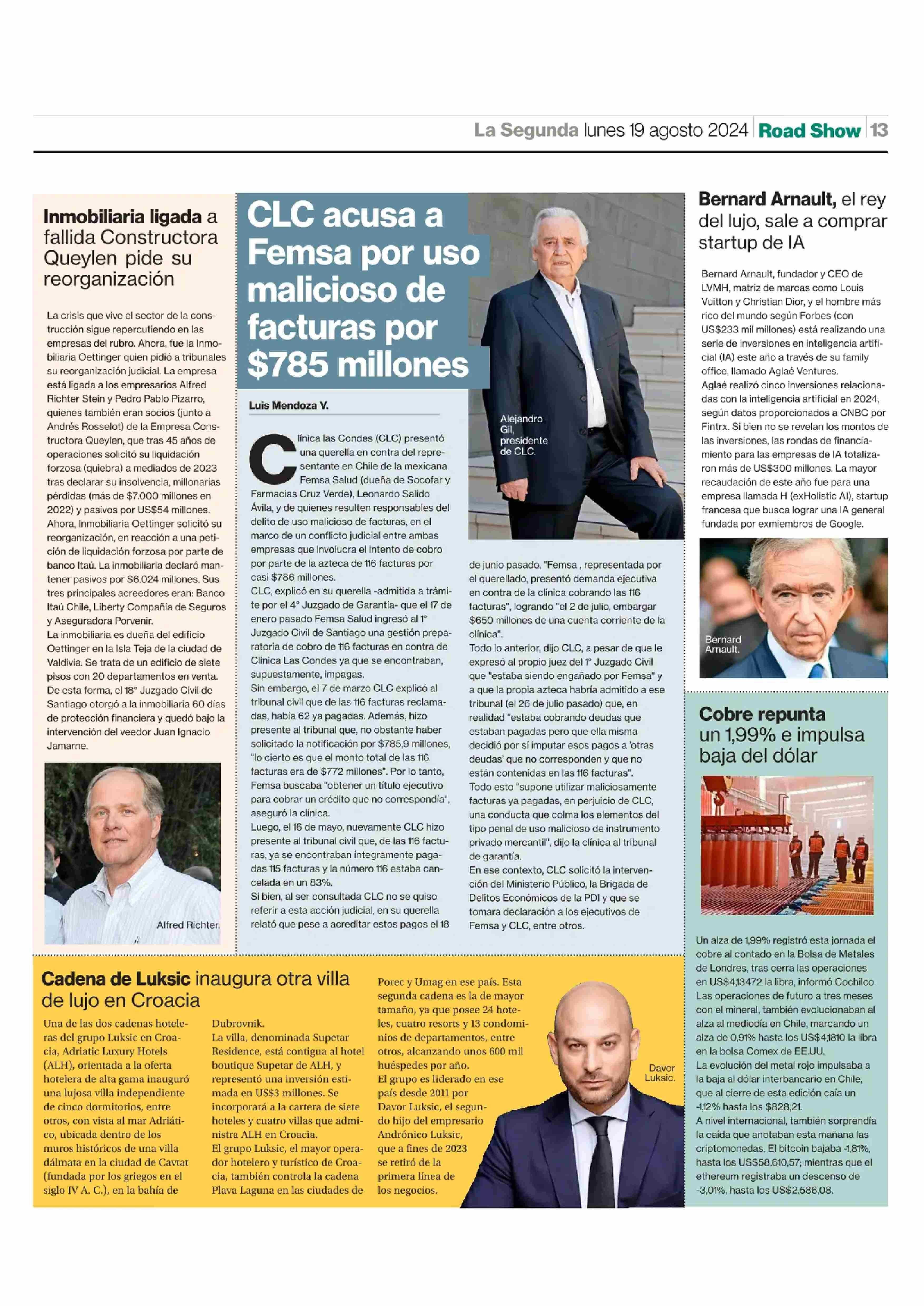CLC acusa a Femsa por uso malicioso de facturas por $785 millones 19-08-2024 La Segunda |