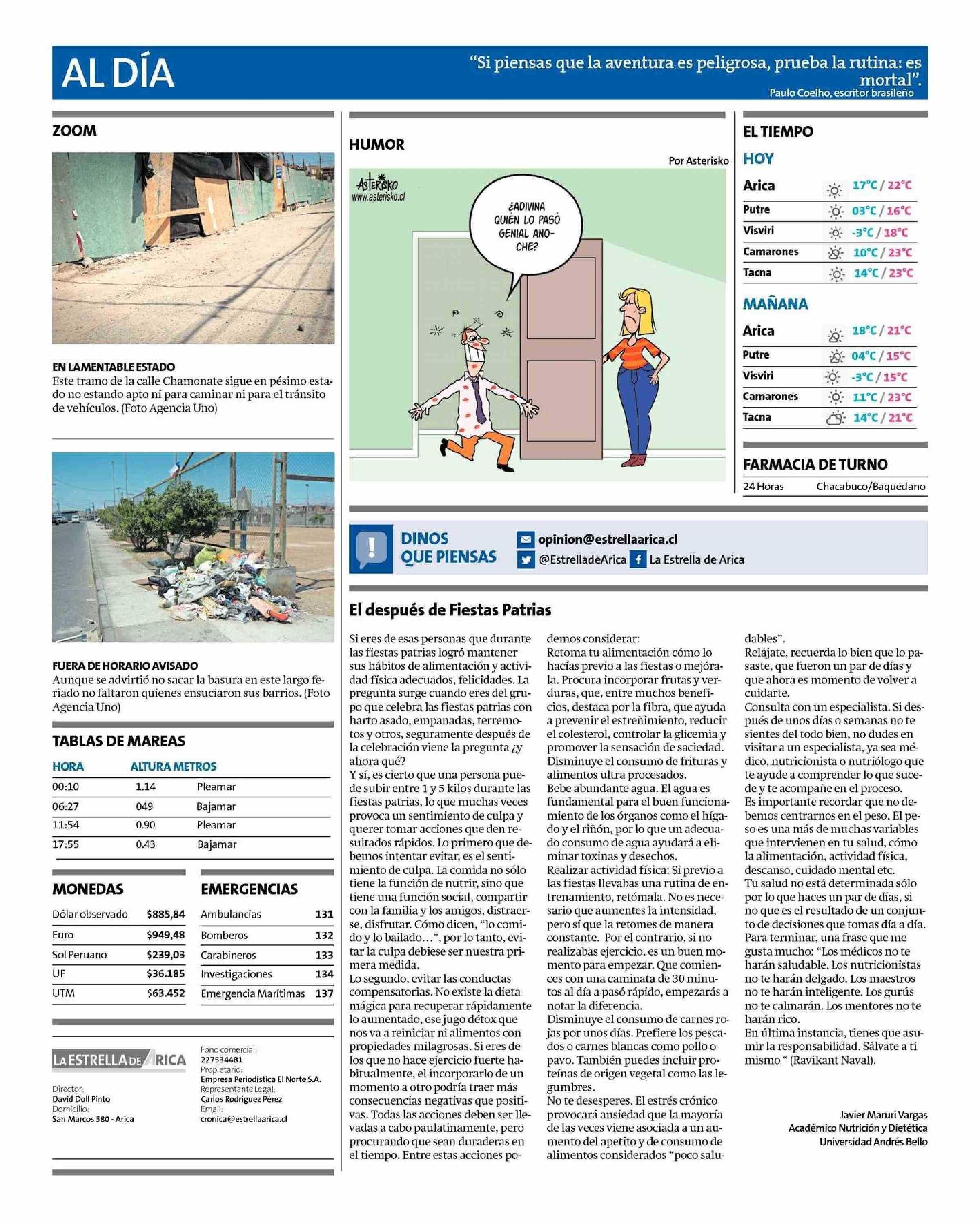 El después de Fiestas Patrias 20-09-2023 La Estrella de Arica |