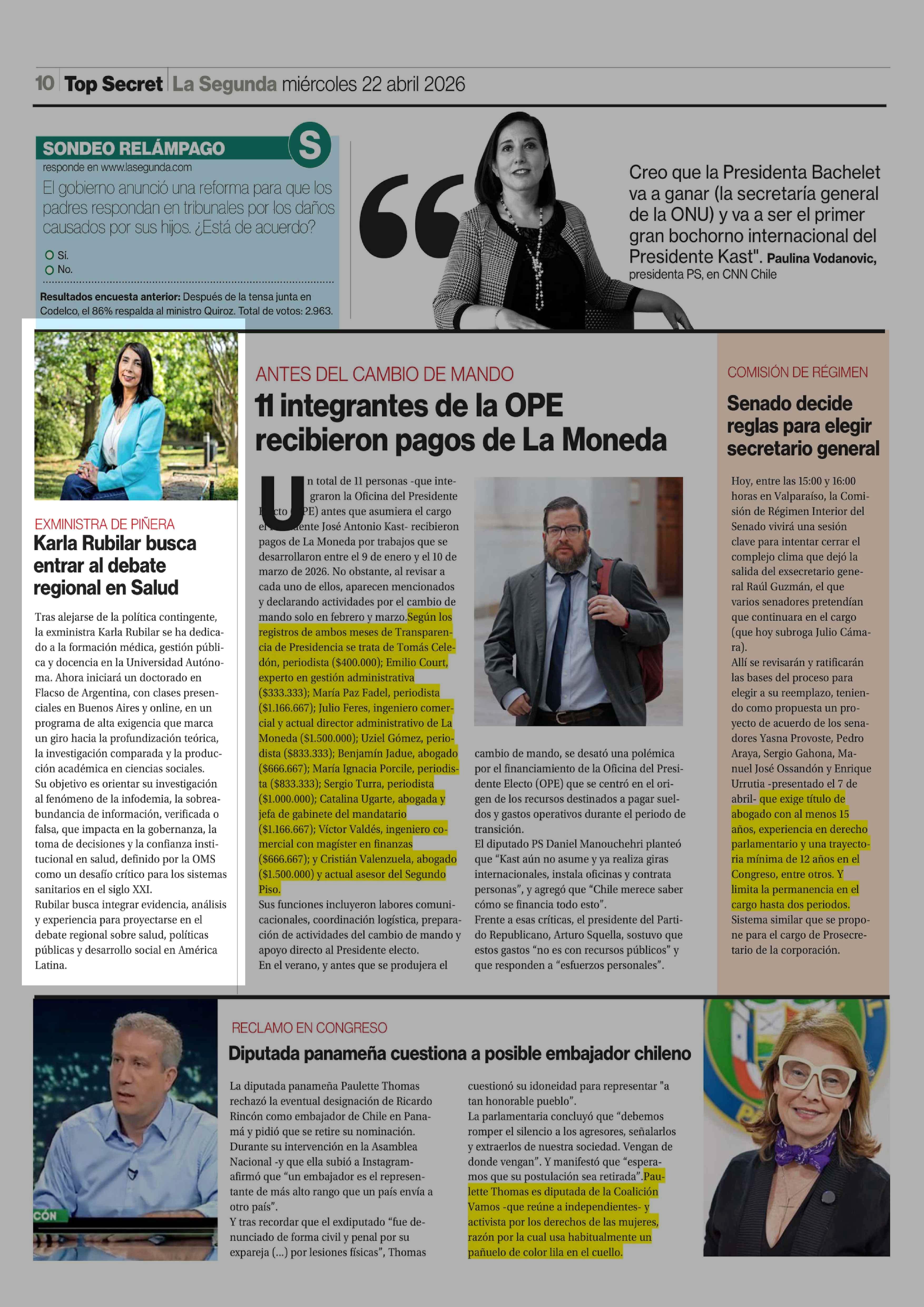 Karla Rubilar busca entrar al debate regional en Salud 22-04-2026 La Segunda |