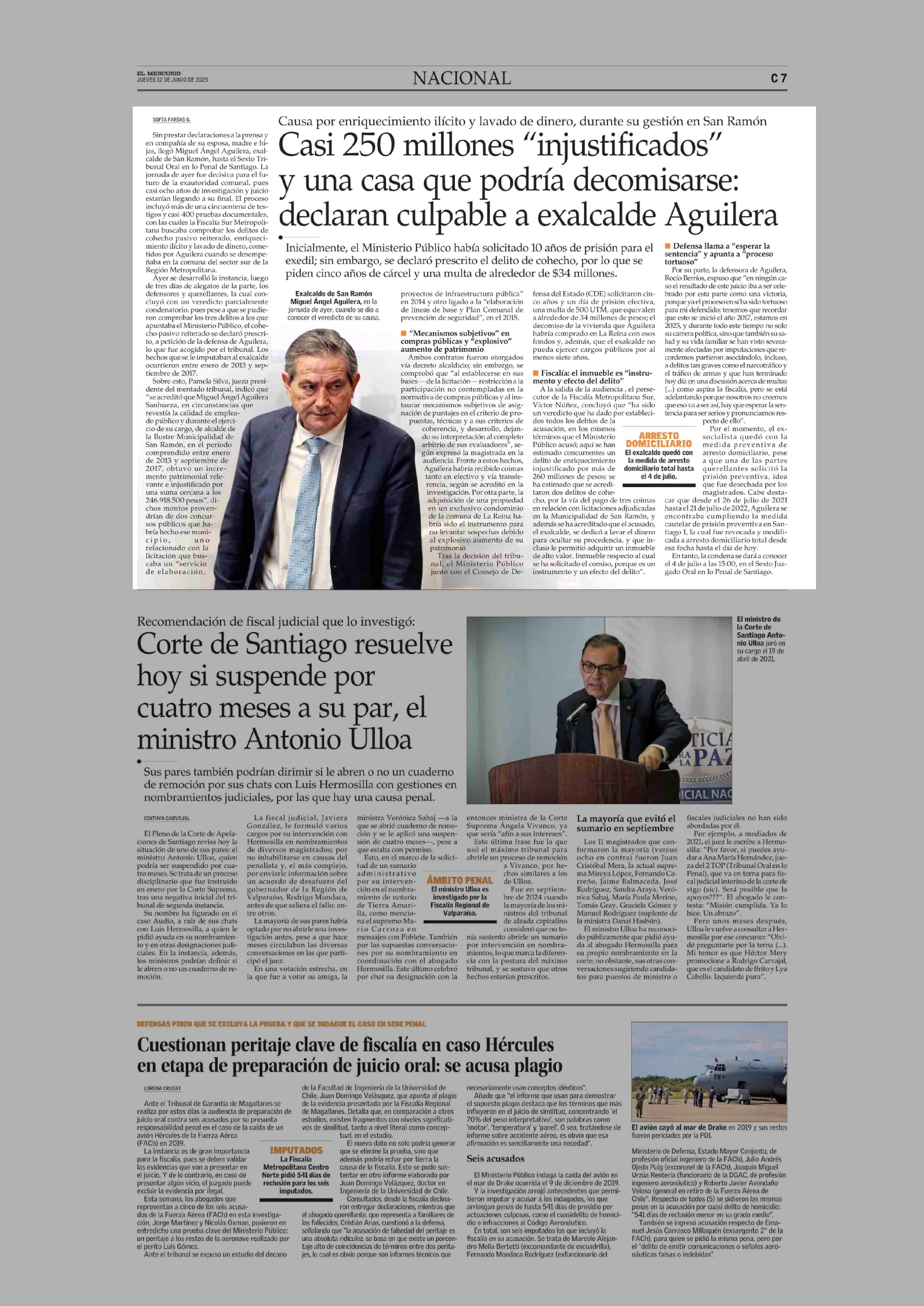Casi 250 millones “injustificados” y Una casa que podría decomisarse: declaran culpable a exalcalde Aguilera 12-06-2025 El Mercurio |