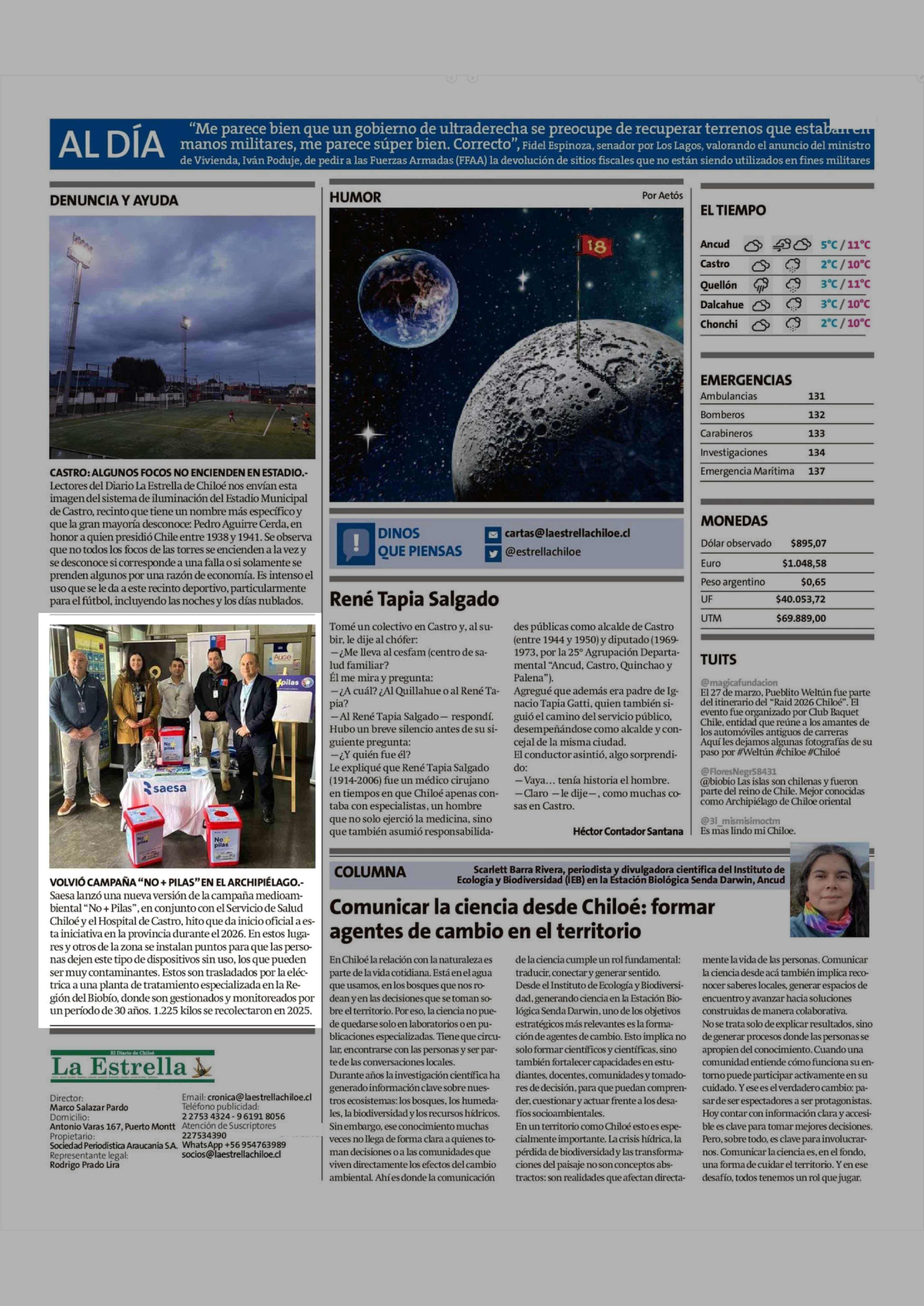 VOLVIÓ CAMPAÑA "NO + PILAS" EN EL ARCHIPIÉLAGO .- 25-04-2026 La Estrella de Chiloé |