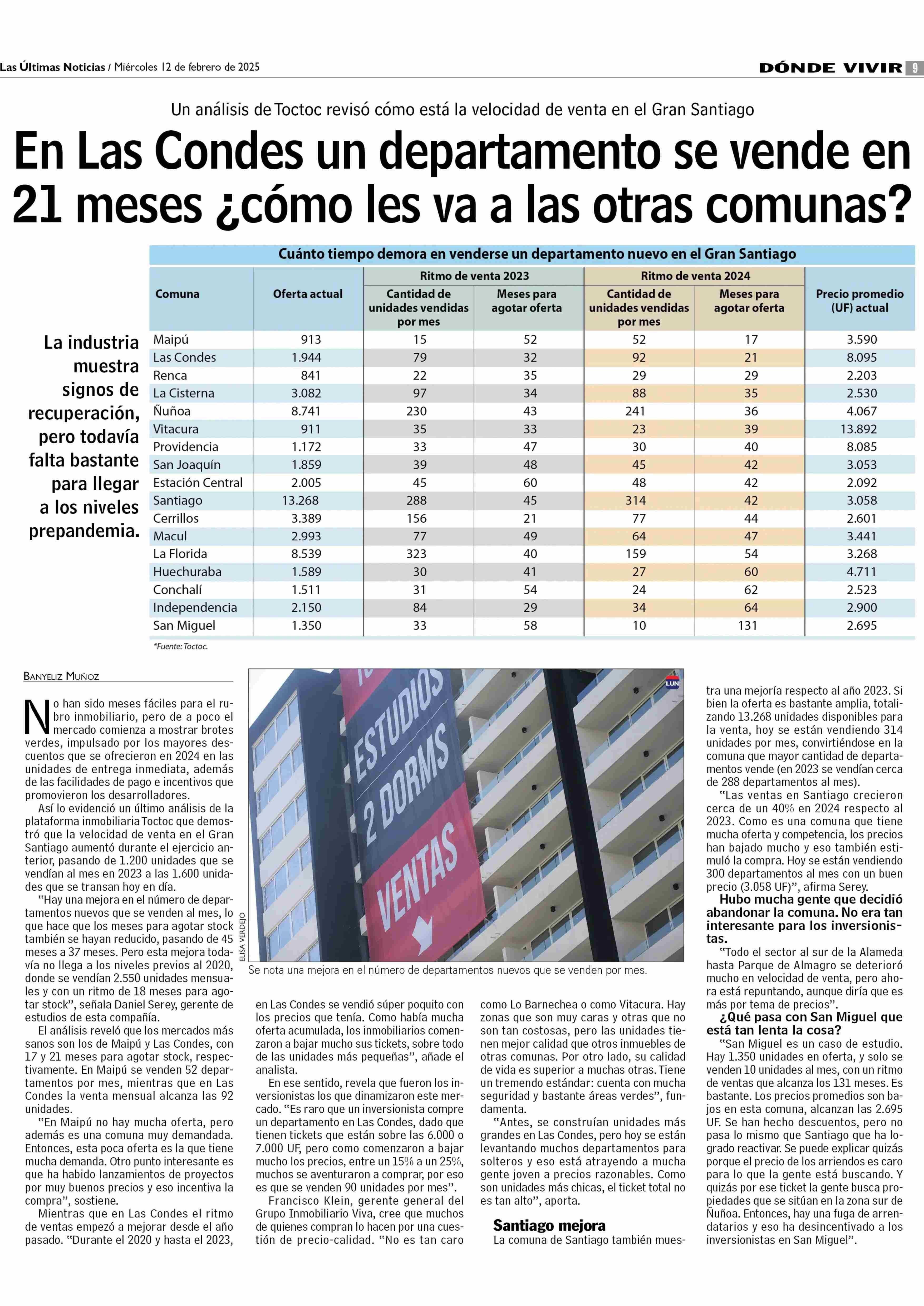 En Las Condes un departamento se vende en 21 meses ¿cómo les va a las otras comunas? 12-02-2025 Las Últimas Noticias |